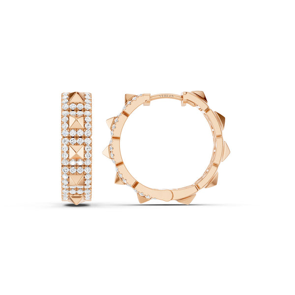 Satin finish yellow gold with diamond in the center La Fleur diamond huggie hoops!