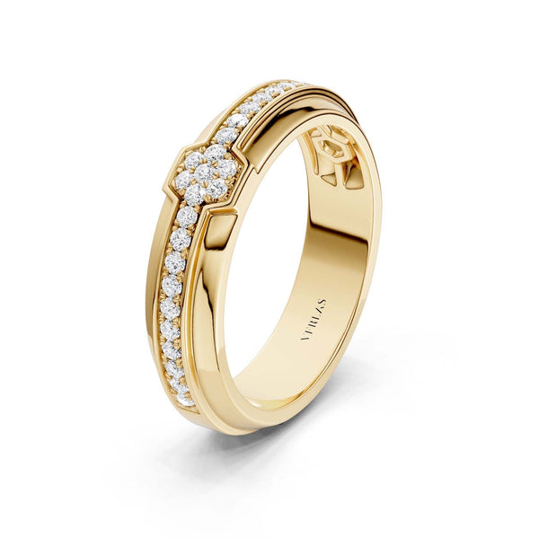 This is one of my favorite rings I have ever bought for myself. I always buy quality 18k gold with diamonds only. I am so happy to have found Verlas. Even though my ring is thin, the name is engraved beautifully.