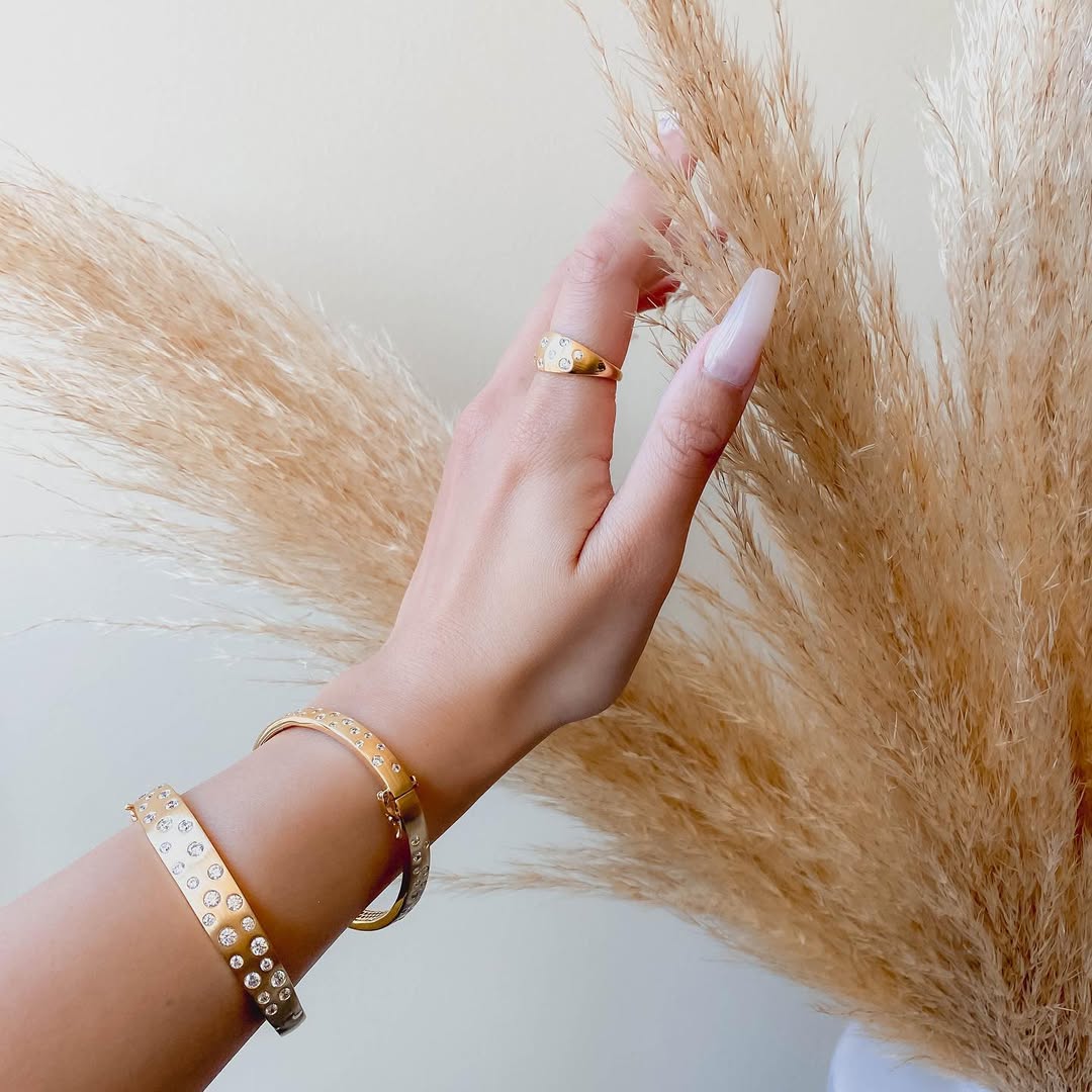 Exquisite. Absolutely beyond gorgeous in person. This is the perfect diamond decked stud bangle for the jewelry lover. The pictures don’t do it justice. It is a bit oversized, which is great for stacking…