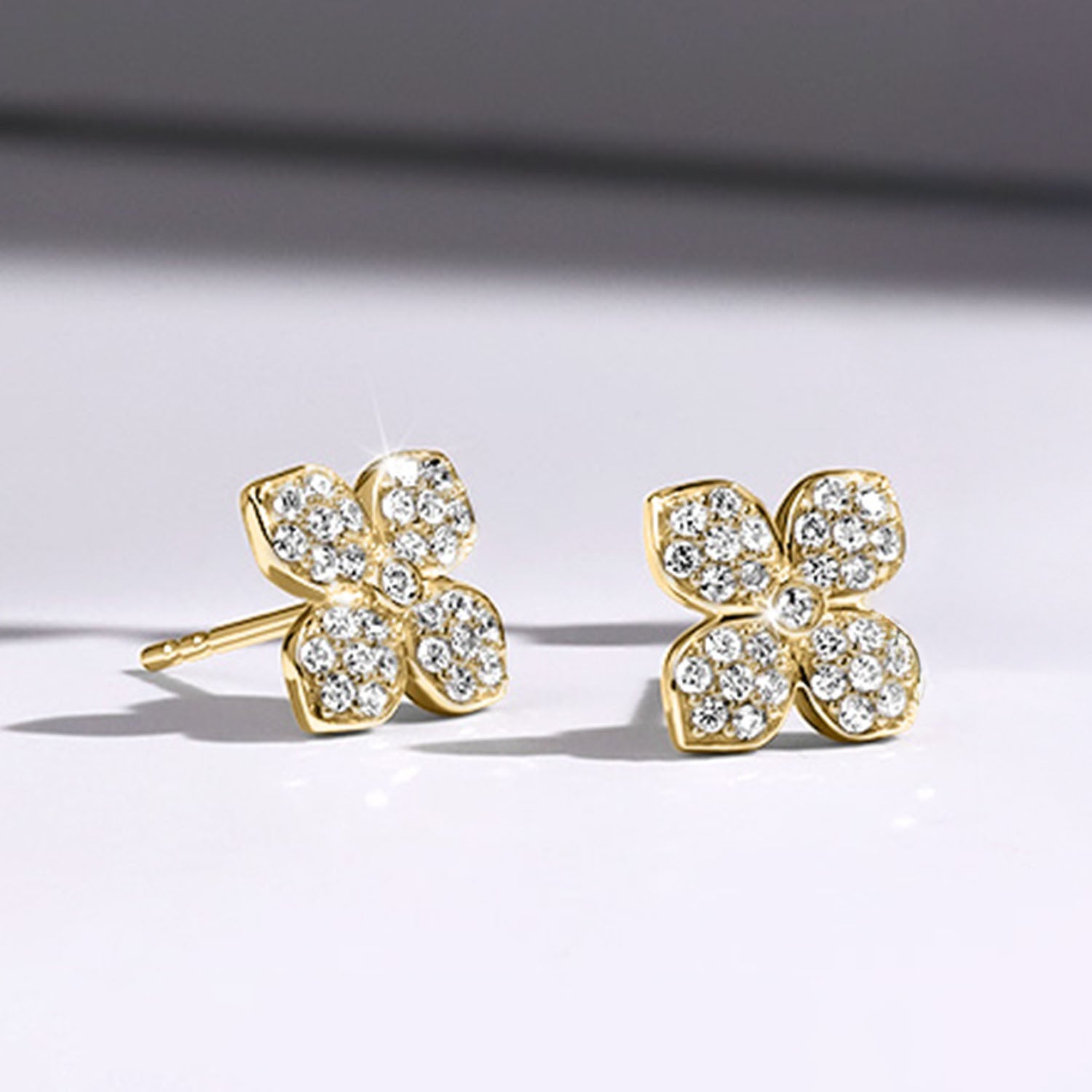 These earrings are gorgeous. I am very pleased with them and received expert and very attentive customer service from Customer Care. I am going to order a station 16 inch necklace with the flowers customized to match the earrings( yellow gold with diamond in the center with satin finish petals. I would like to communicate with the Customer care again on this custom necklace.