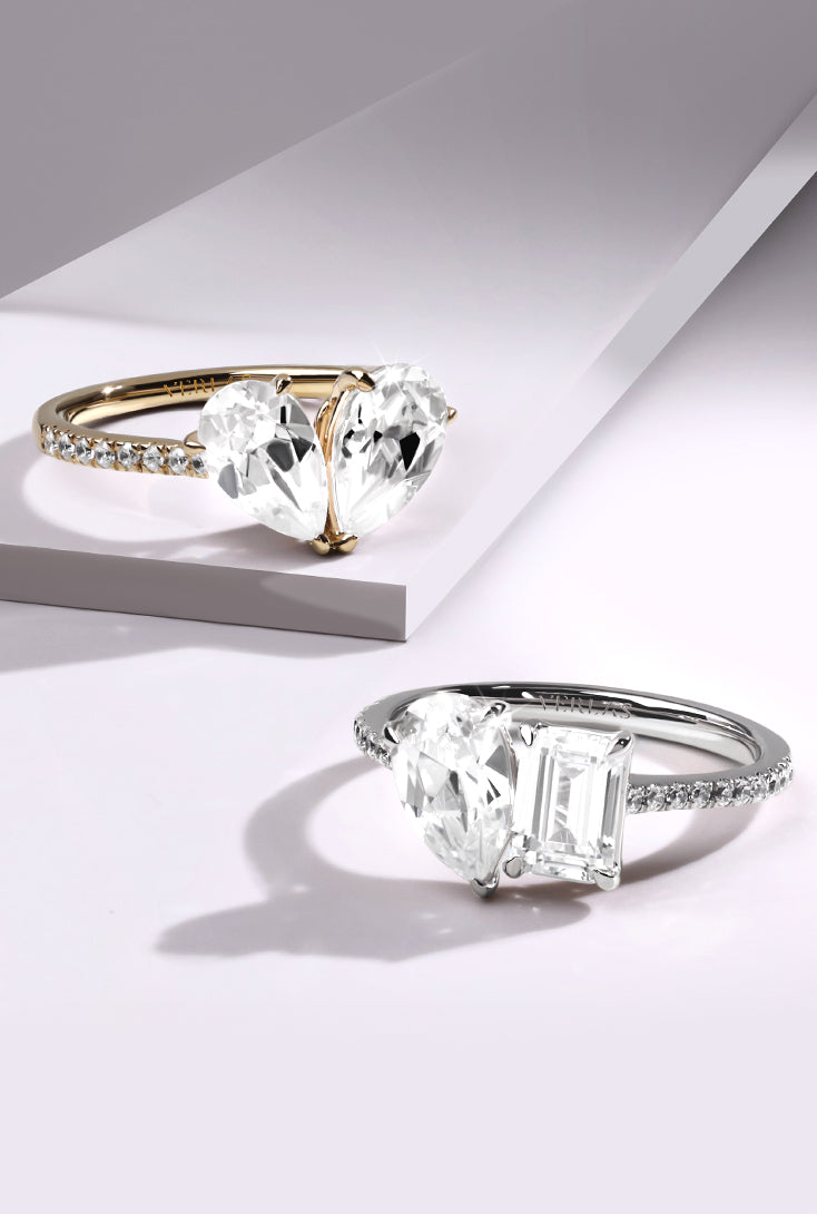 1 1/2 Ct. T.W. Asymmetrical Emerald Diamond Toi et Moi Ring