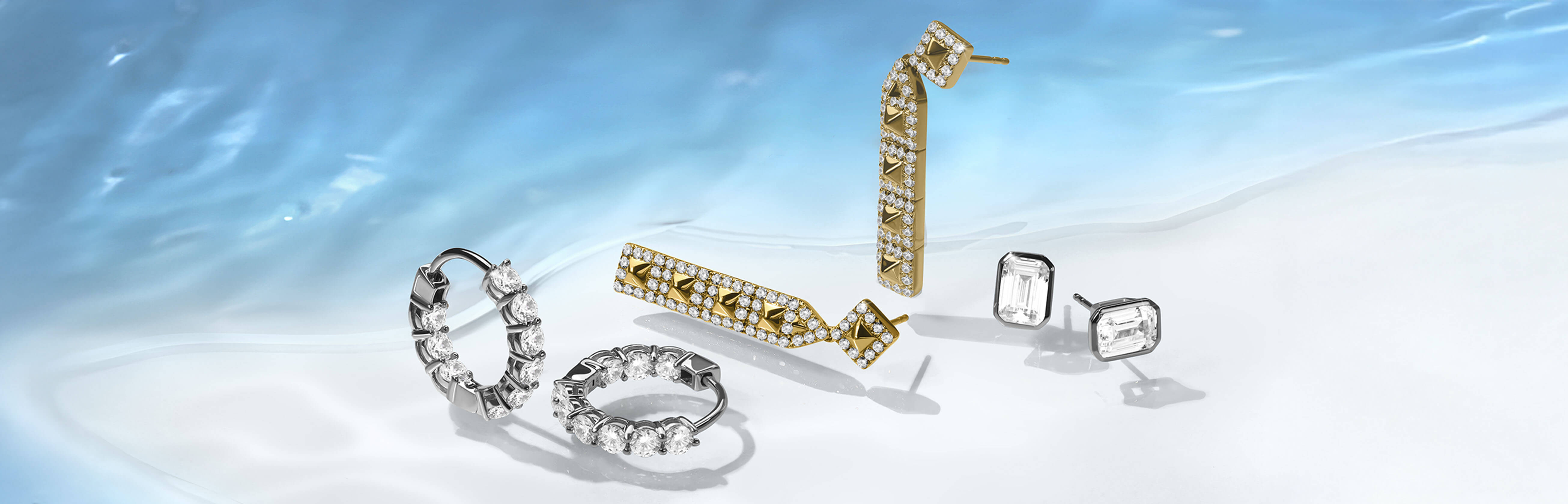 Discover our stunning collection of diamond studs, danglers, and hoops featuring both lab-grown and natural diamonds. From classic to versatile, find earrings that match your style.