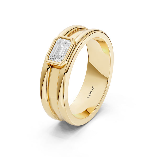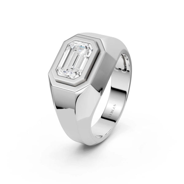 1 3/4 Ct. T.W. Coupled Emerald Bezel Ring