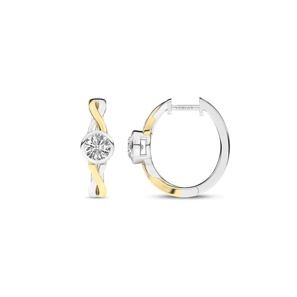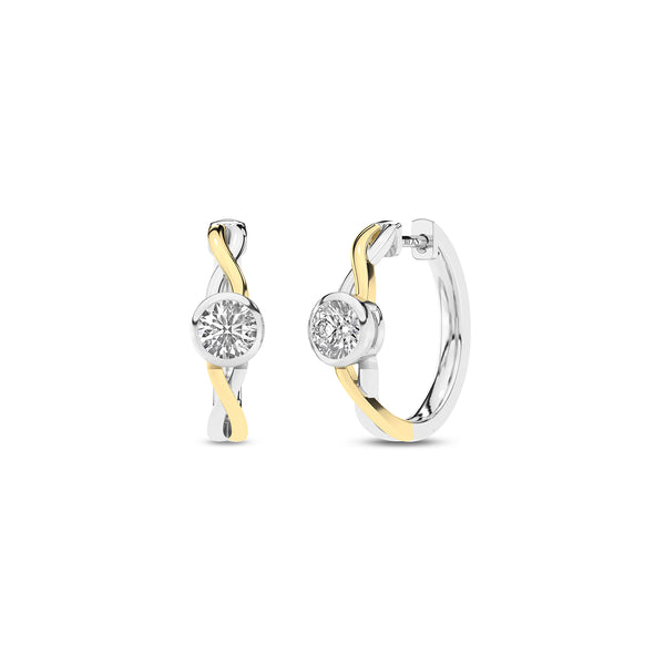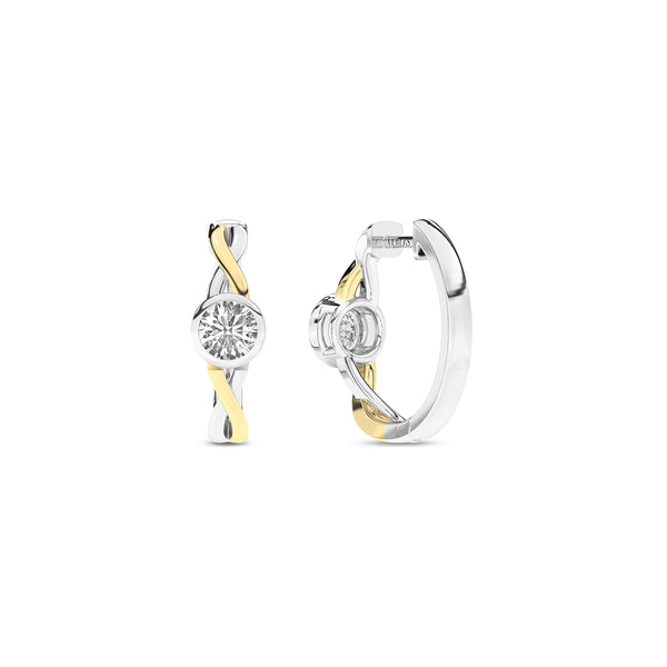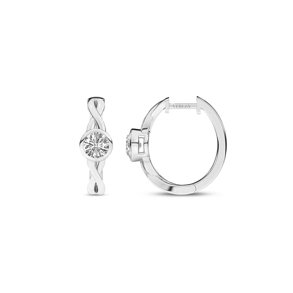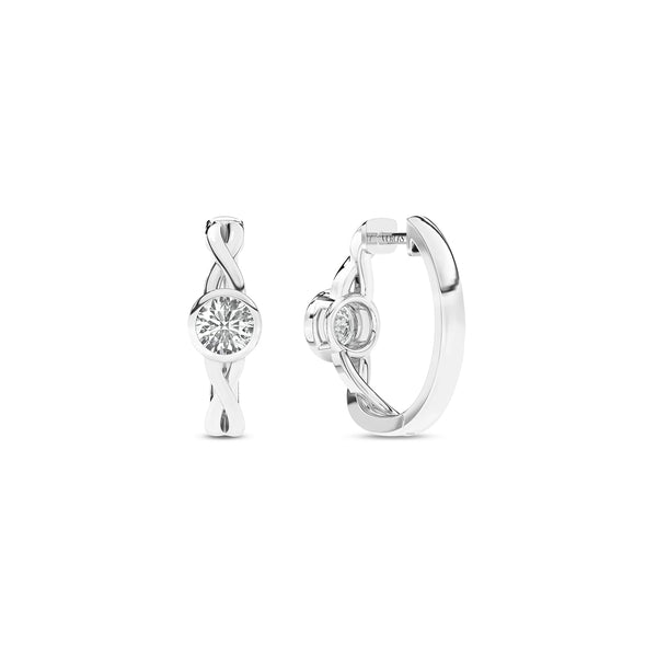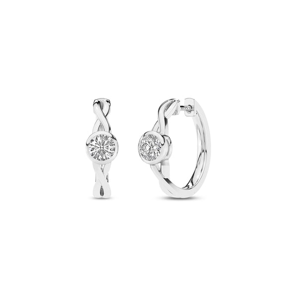 1 1/2 Ct. T.W. Twisted Bezel Round Diamond Huggie Hoops
