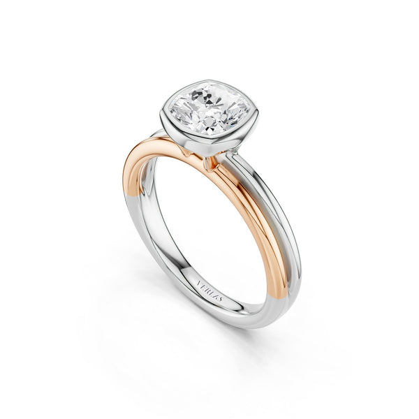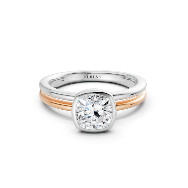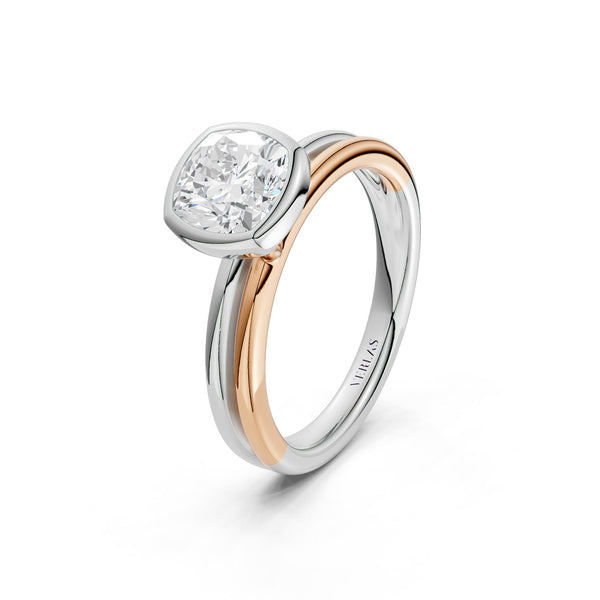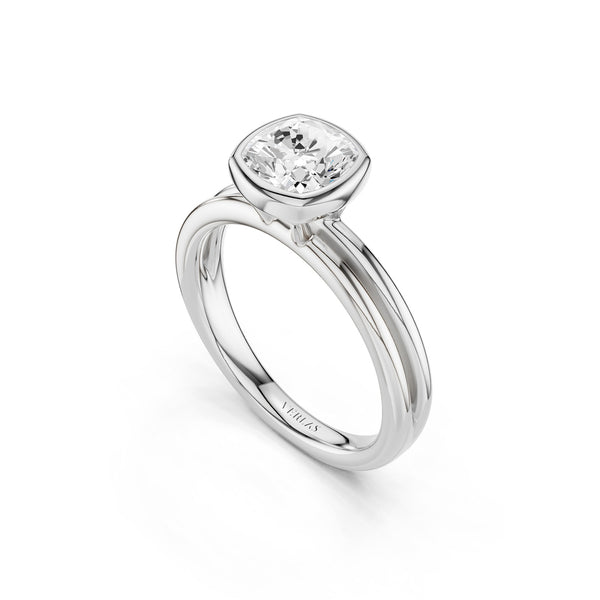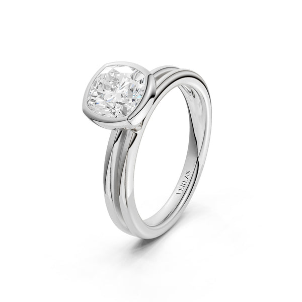 1 1/2 Ct. T.W. Coupled Cushion Bezel Ring