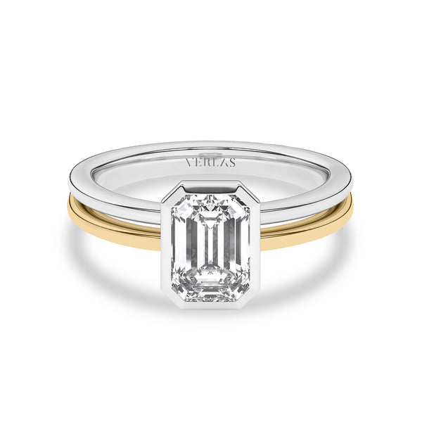1 3/4 Ct. T.W. Coupled Emerald Bezel Ring