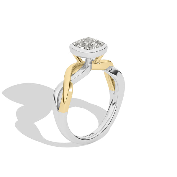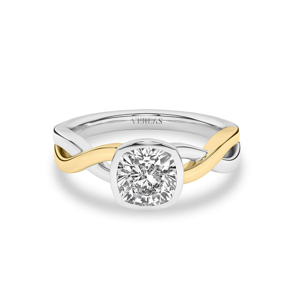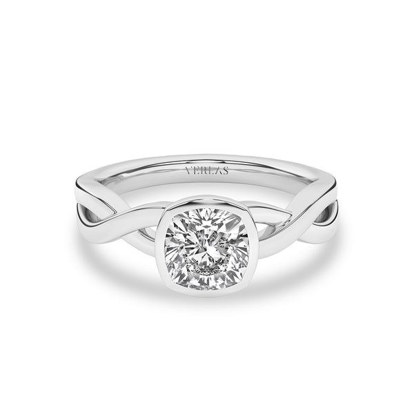 1 1/2 Ct. T.W. Twisted Bezel Cushion Diamond Ring