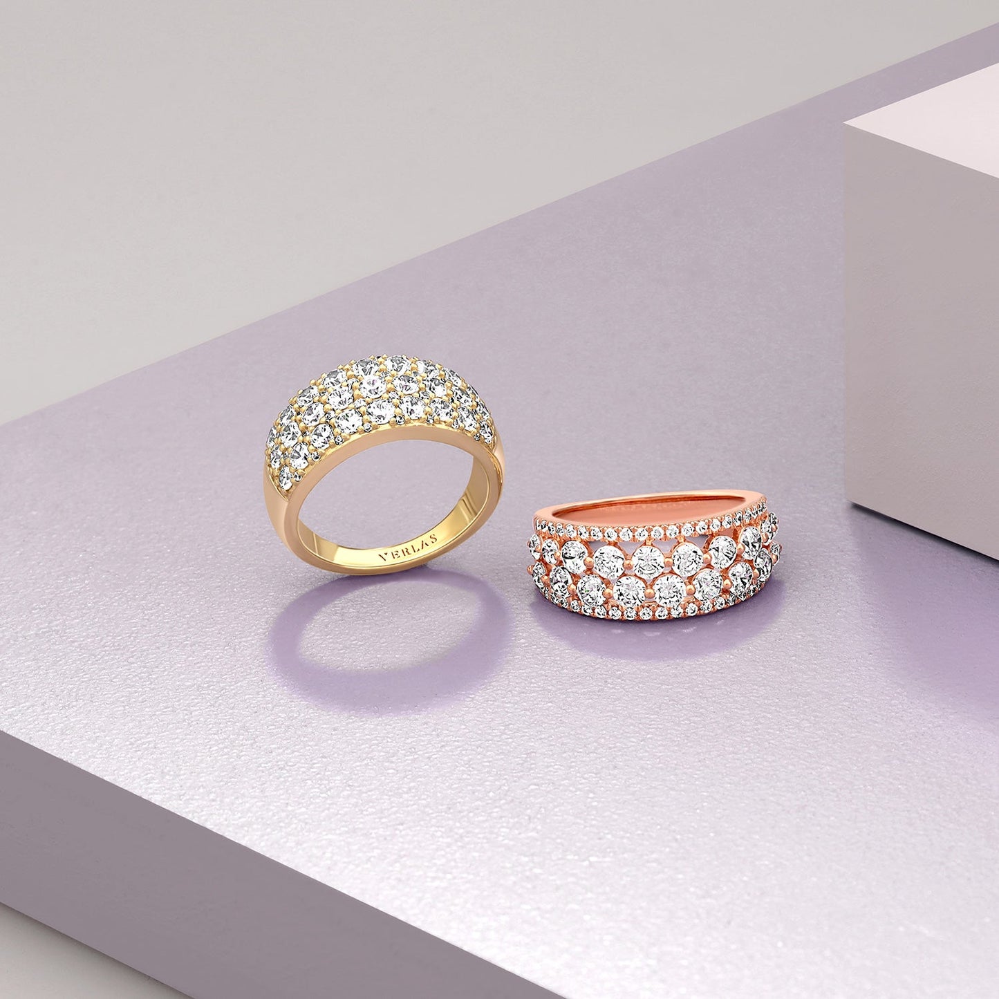 The 3-Row Exquisite Band brings together elegance and sophistication. Crafted with gold and adorned with dazzling diamonds, this band is a luxurious statement piece that will elevate any look. With its ethically sourced diamonds and transparent pricing, it's not just stylish but also guilt-free.