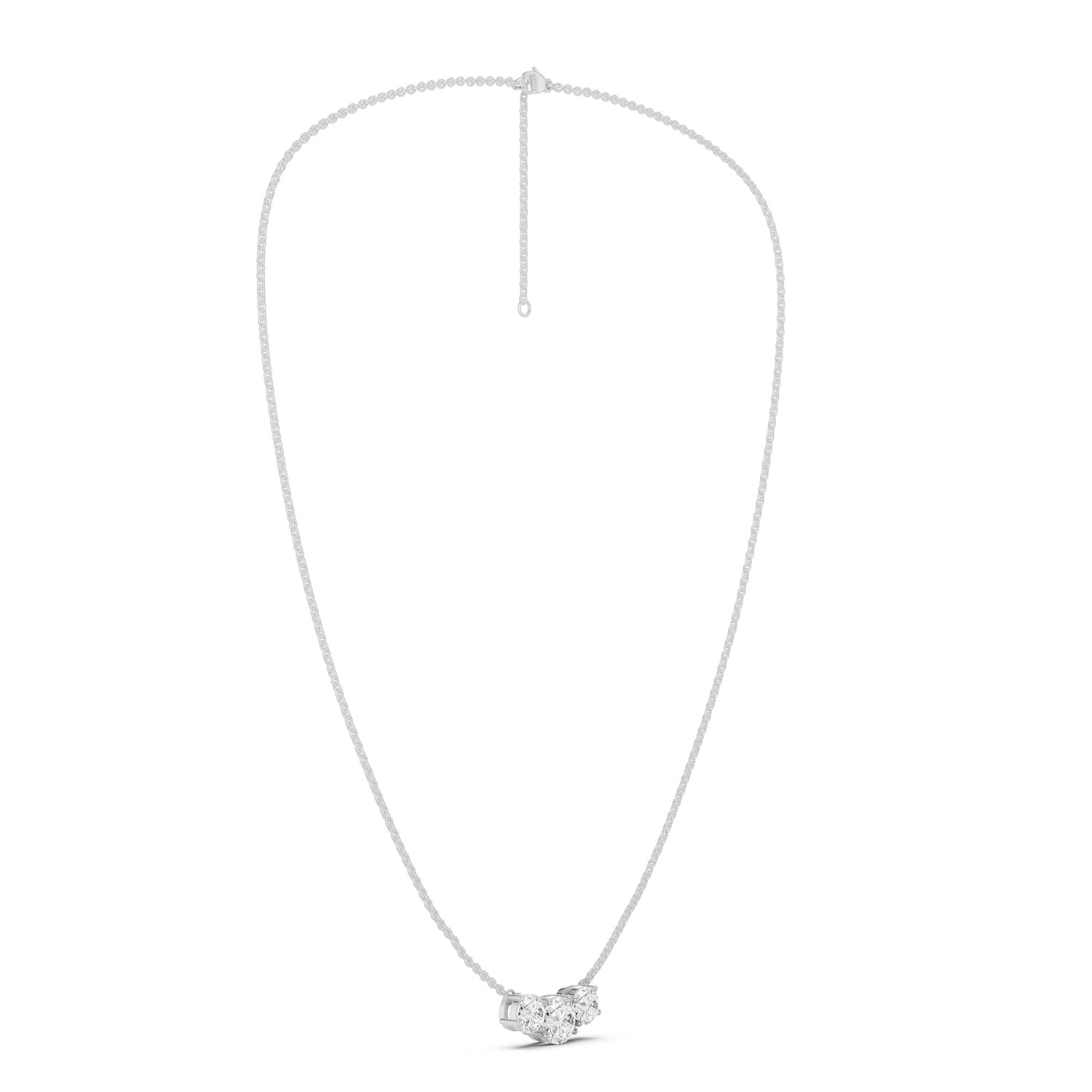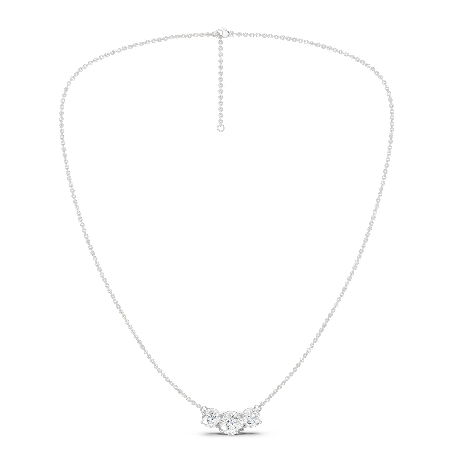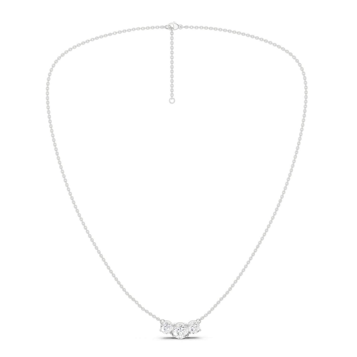 A desirable classic, this elegant diamond necklace has three best lab-grown diamonds giving out maximum sparkle, making a stunning piece for casual and special occasions. Each diamond is prong-set into the chain giving the whole piece a lustrous look and feel.