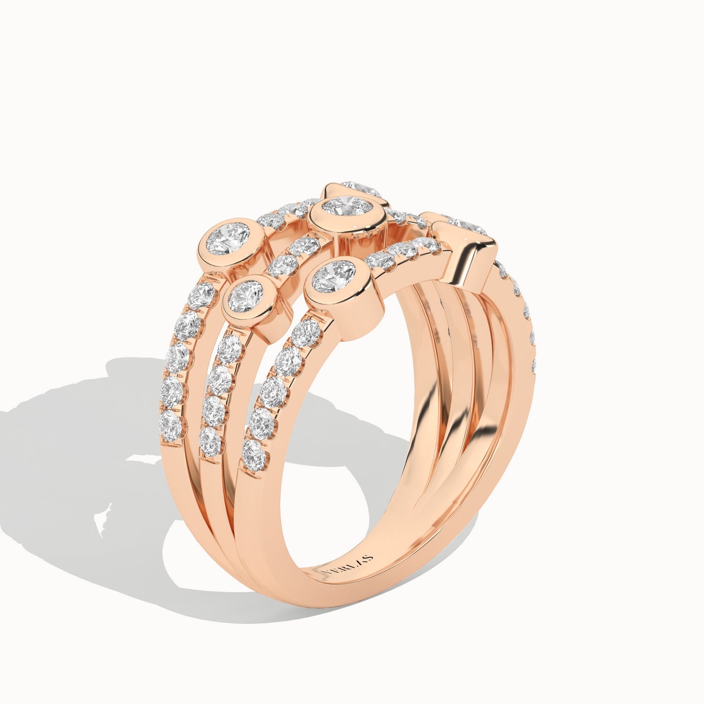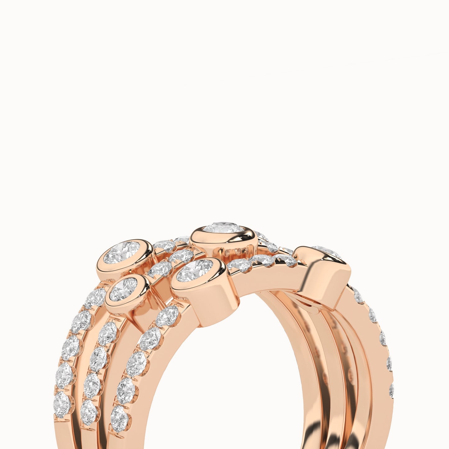 The 3-Tier Smitten Ring is a symphony of diamonds, meticulously orchestrated to create a captivating visual masterpiece. Each tier features a unique arrangement of round diamonds, with larger diamonds taking center stage, elegantly framed by smaller diamonds. It strikes the perfect balance between boldness and subtlety, making it an ideal choice for those looking for a diamond ring for an anniversary.