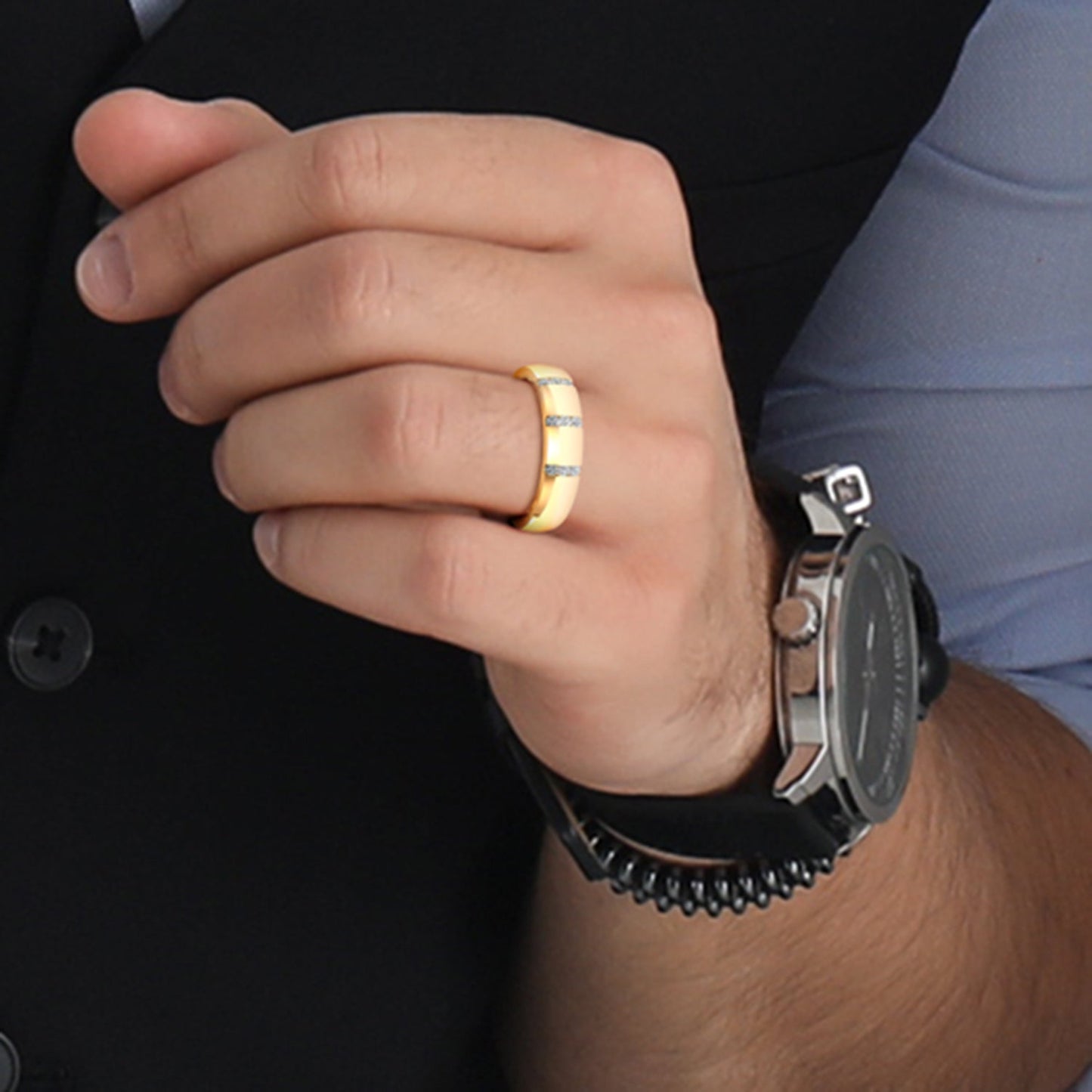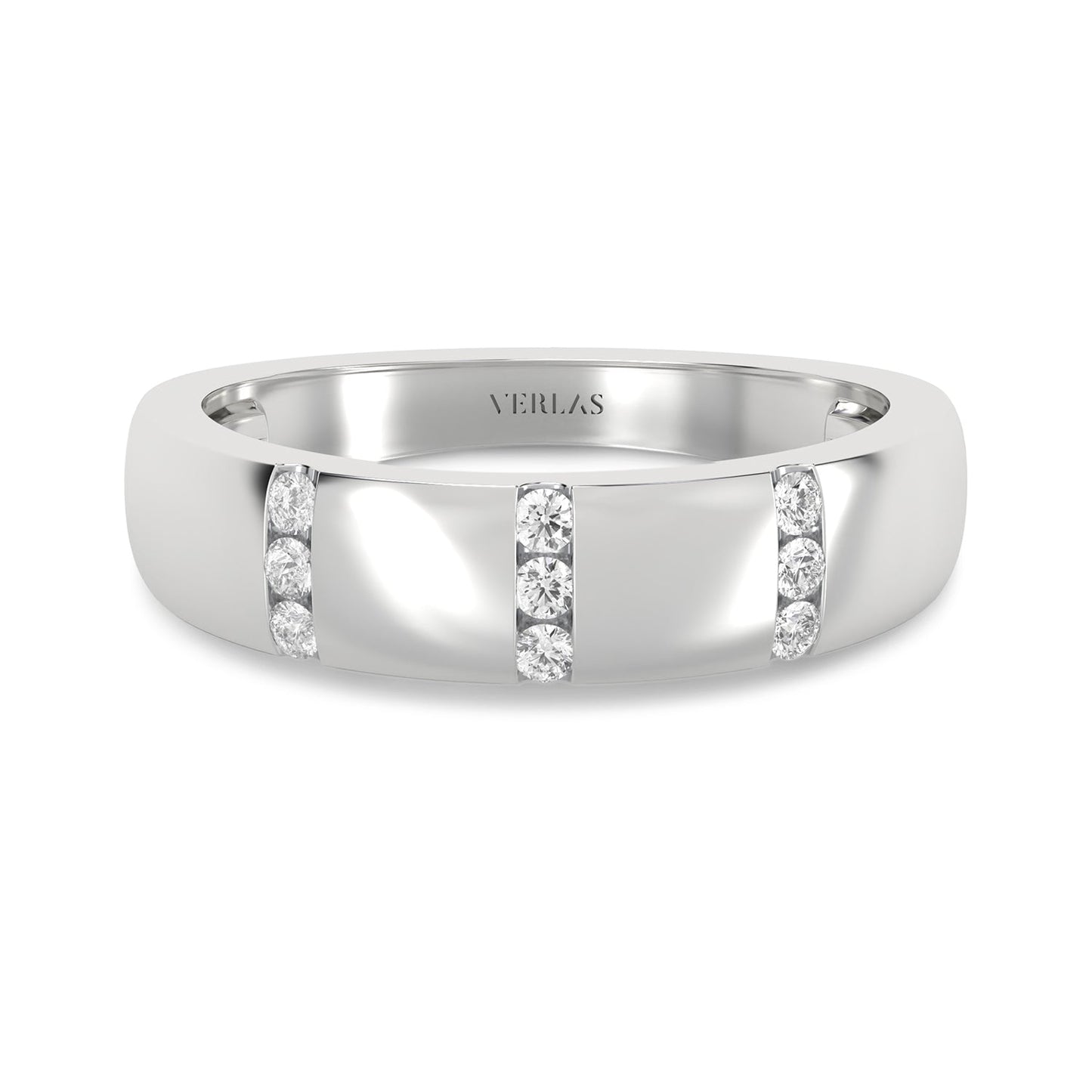 Introducing the 3x3 Diamonds Nick Set Band. This band showcases a stunning array of nine diamonds set in a nick pattern. Crafted in solid gold, the design is modern and eye-catching. With Verlas' commitment to sustainability and fair practices, this band allows you to wear a unique piece that reflects your values.