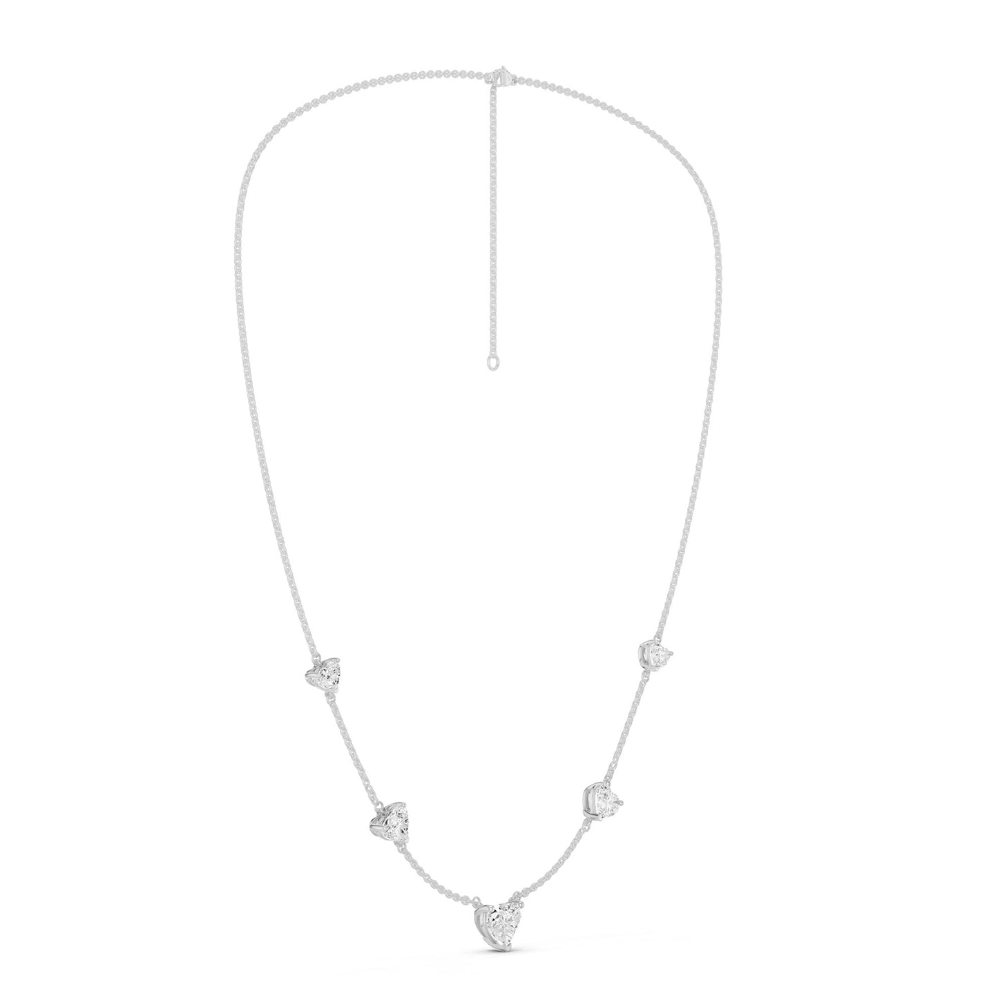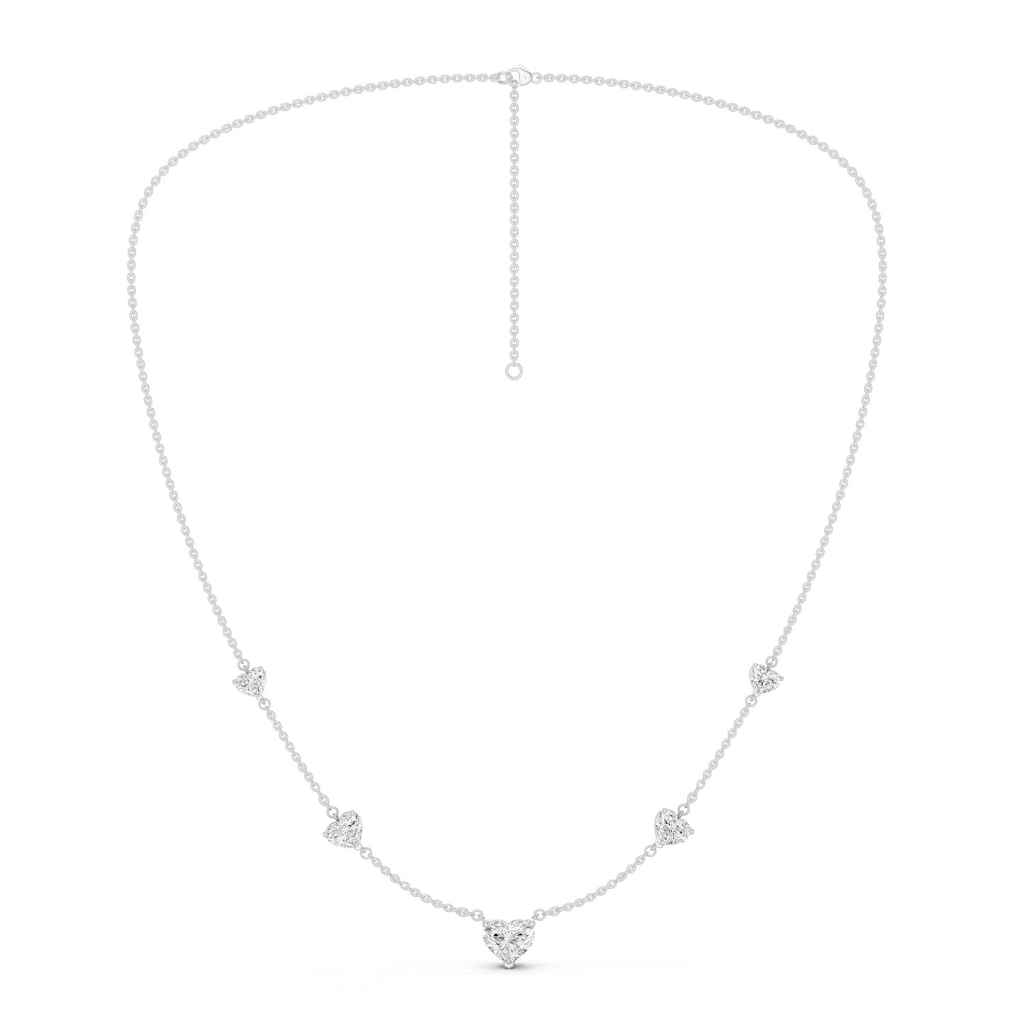 The 5 Heart Stationed Necklace is a celebration of romance in diamonds and gold. It has been crafted to adorn your neckline with a sparkling love of five heart-shaped lab-grown diamonds set on a beautiful gold necklace. Its stationed design adds to its modern flair and versatility, making it the perfect addition to your ensemble.