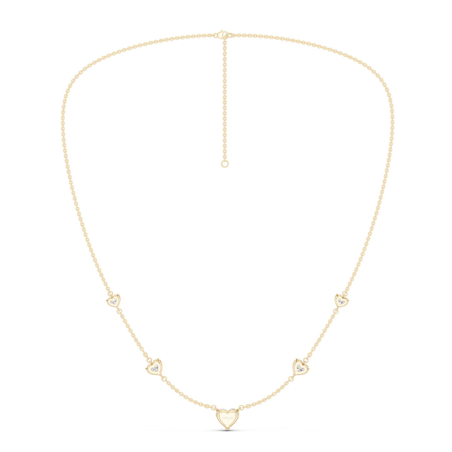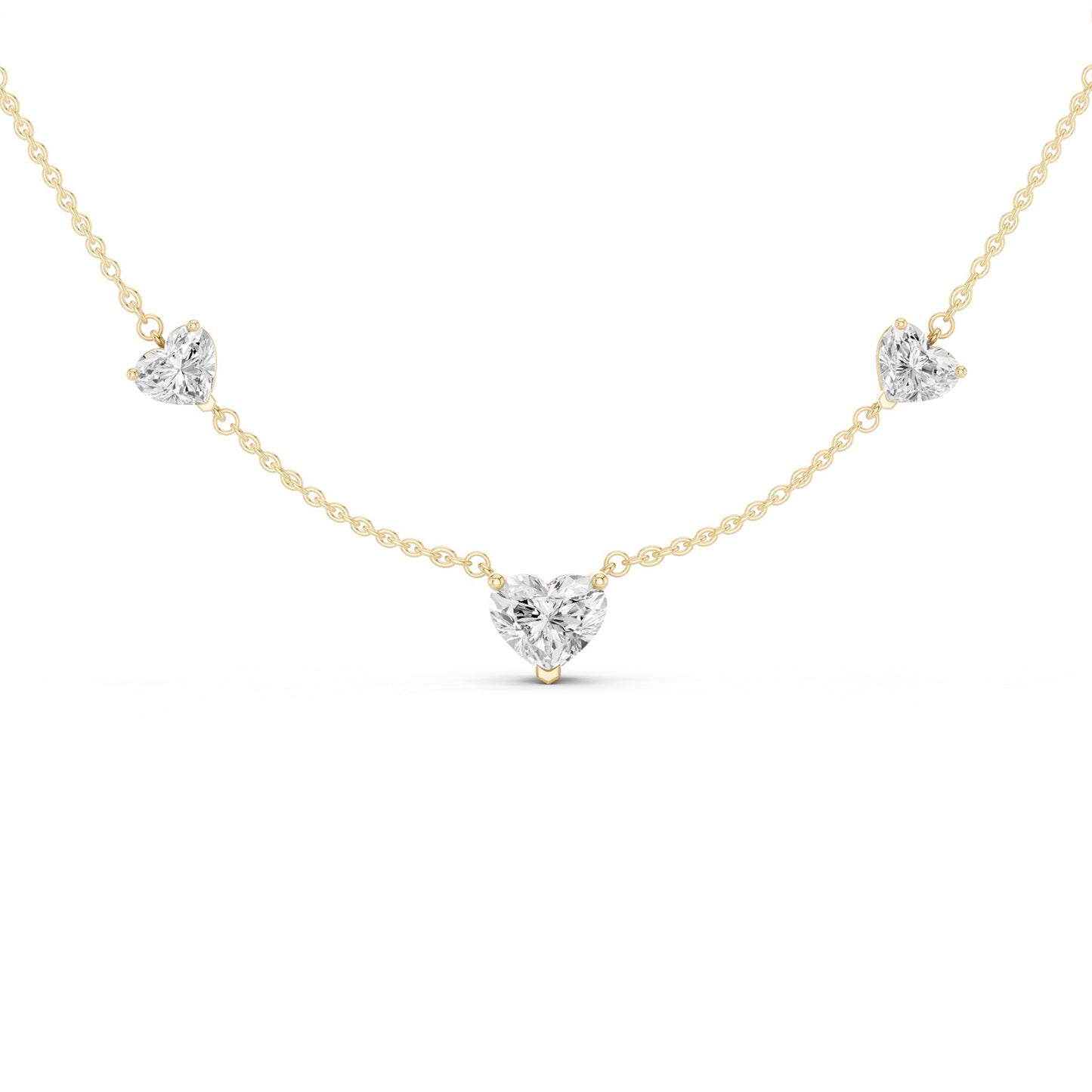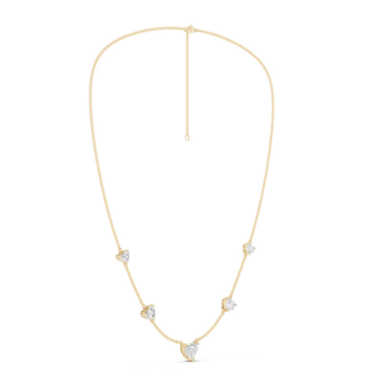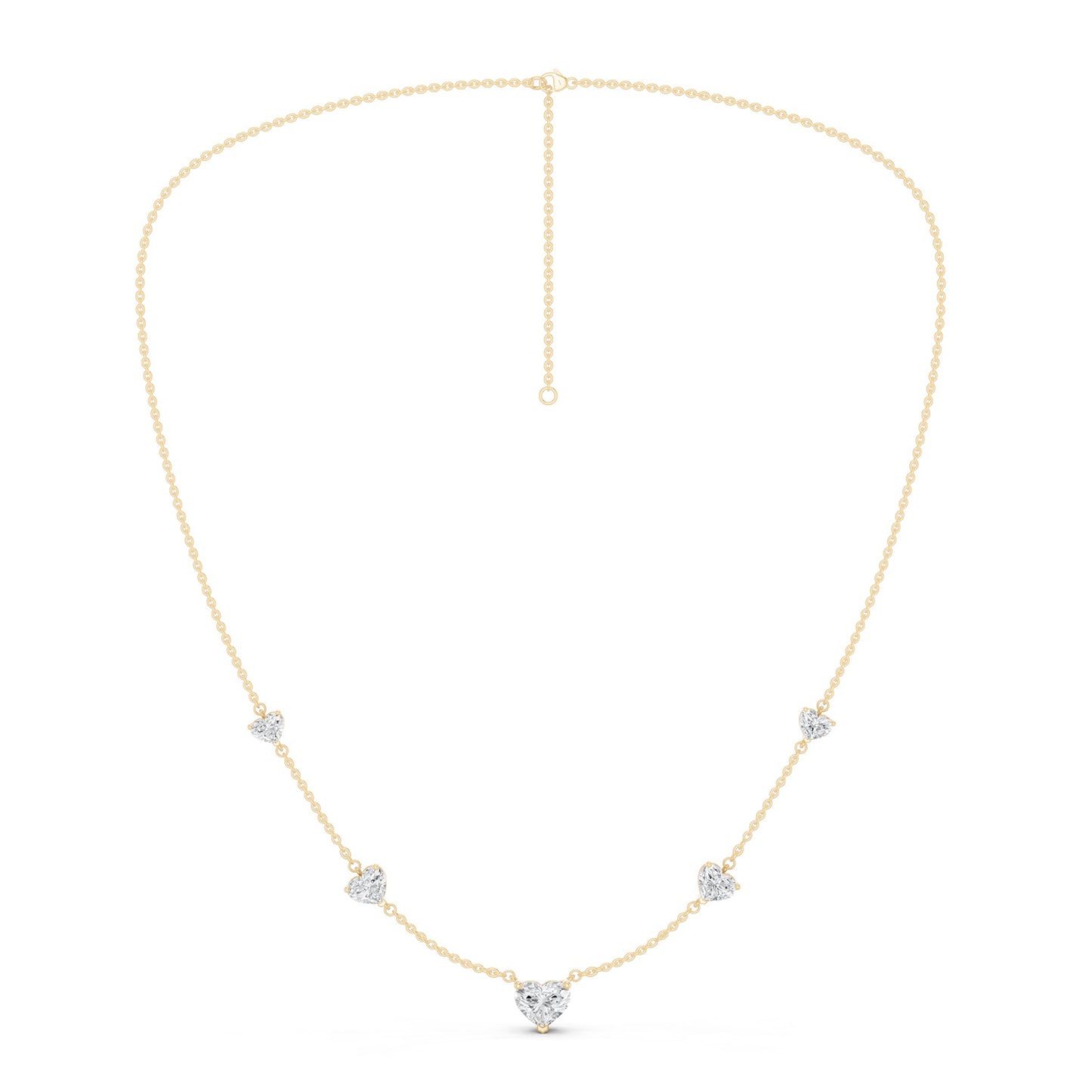 The 5 Heart Stationed Necklace is a celebration of romance in diamonds and gold. It has been crafted to adorn your neckline with a sparkling love of five heart-shaped lab-grown diamonds set on a beautiful gold necklace. Its stationed design adds to its modern flair and versatility, making it the perfect addition to your ensemble.