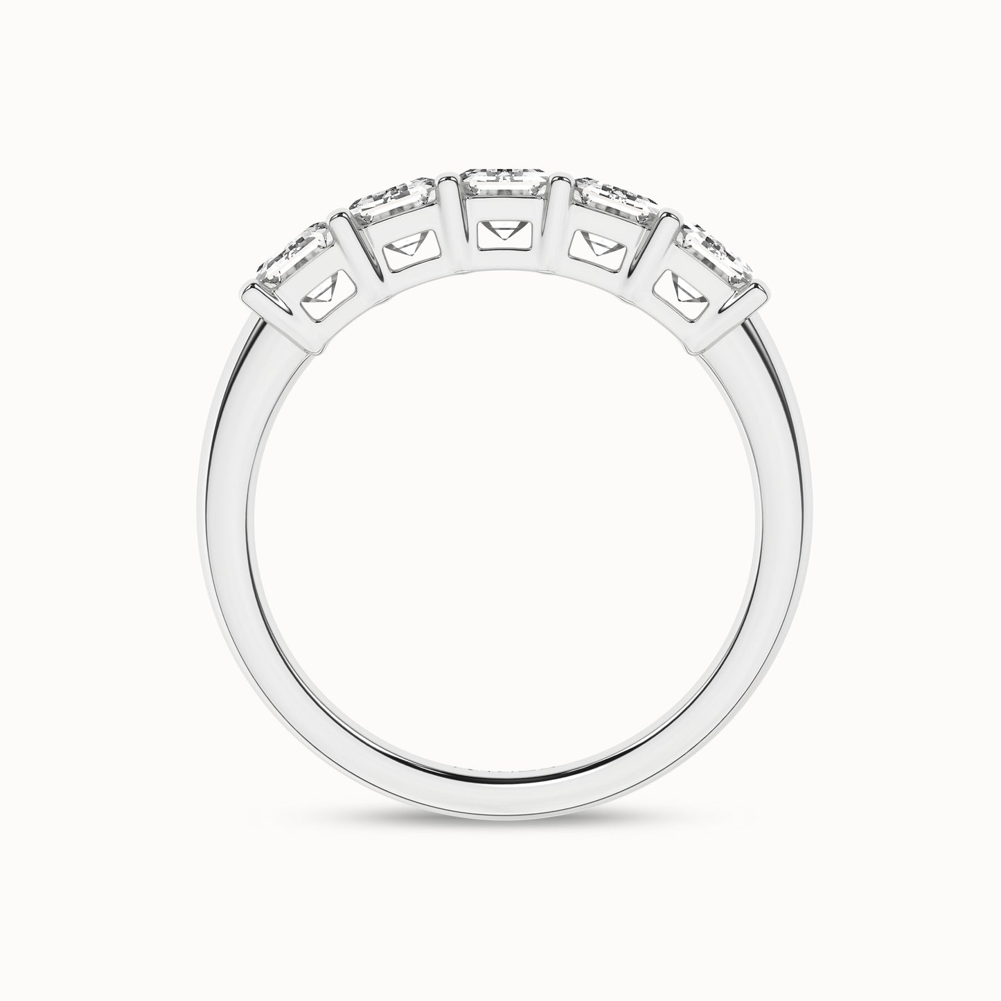 Featuring 5-scintillating emerald-shaped lab-grown diamonds, this 5-stone ring beautifully demonstrates your taste with its elegance, making a stylish appearance. Set in a shared prong setting, the ring exhibits an enduring style and is perfect for making moments memorable.