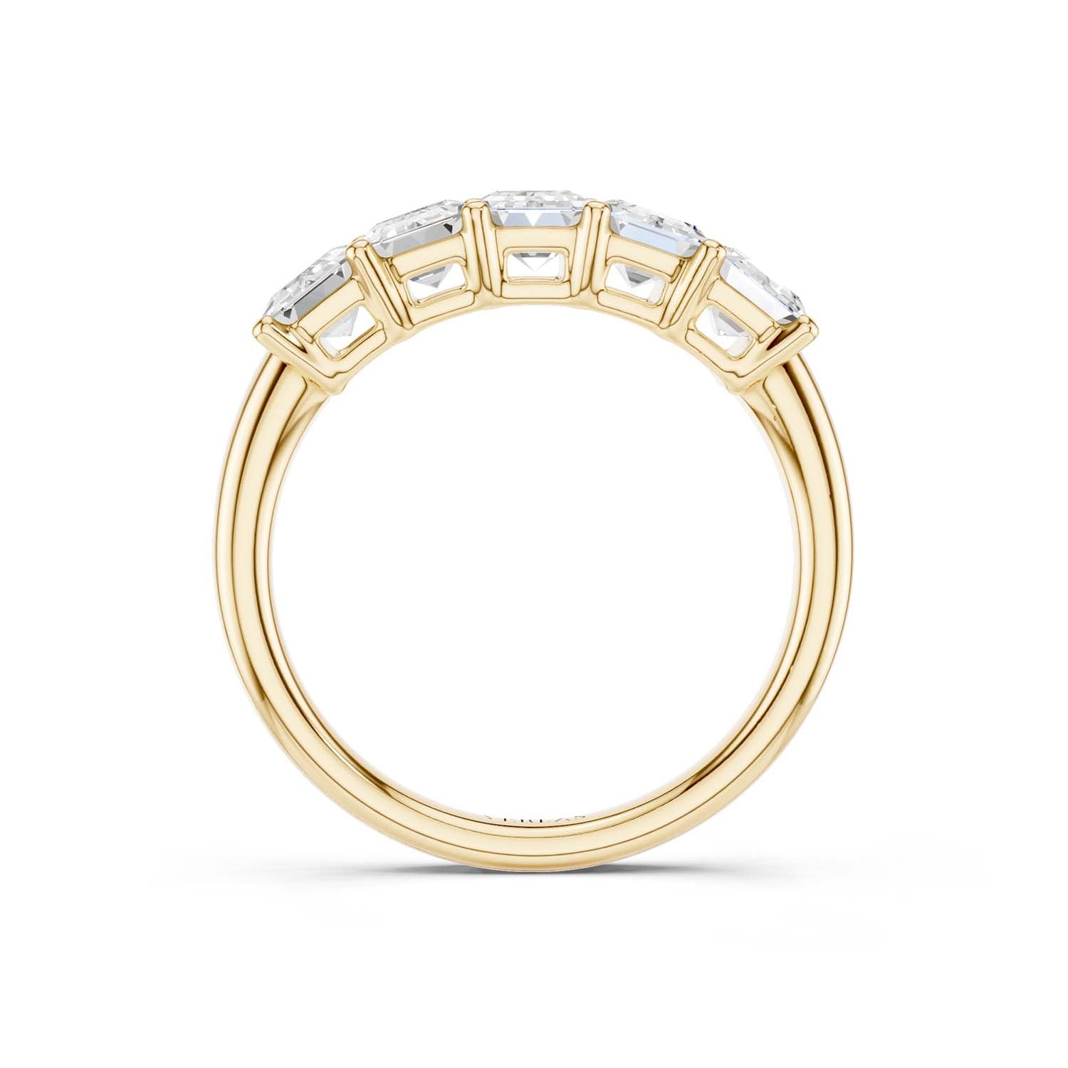 Featuring 5-scintillating emerald-shaped lab-grown diamonds, this 5-stone ring beautifully demonstrates your taste with its elegance, making a stylish appearance. Set in a shared prong setting, the ring exhibits an enduring style and is perfect for making moments memorable.