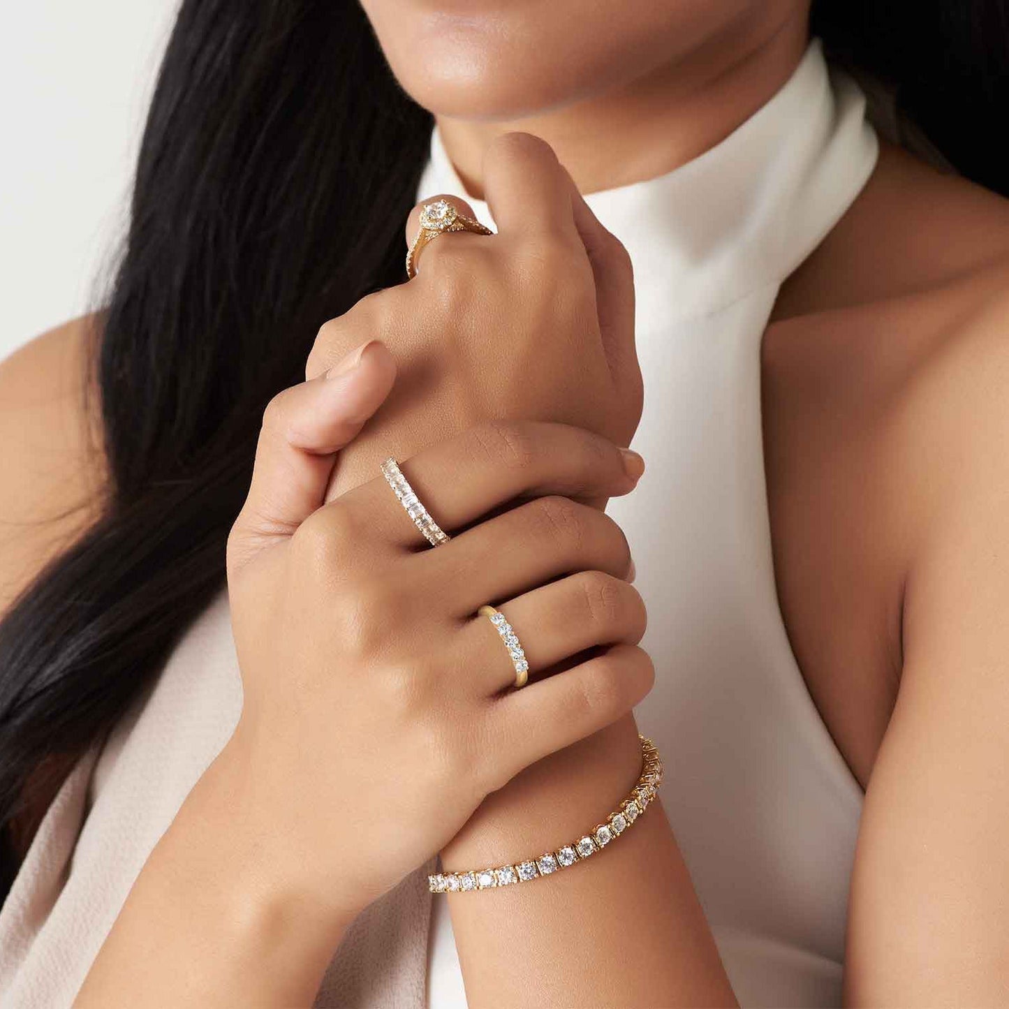 Cubic Zirconia (CZ) simulates the beauty of a diamond but differs drastically in its quality and value. Your Try-at-Home replica jewelry is made with CZ to mimic the beauty of real jewelry at a fraction of a cost so you can feel confident in knowing what your real Verlas jewelry will look like.