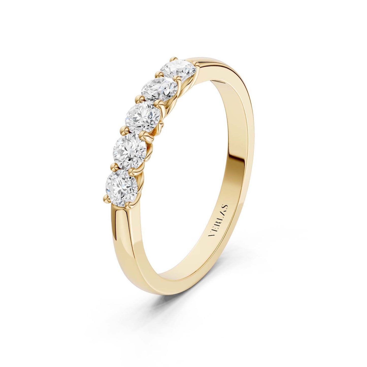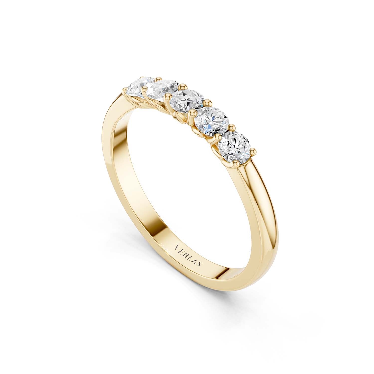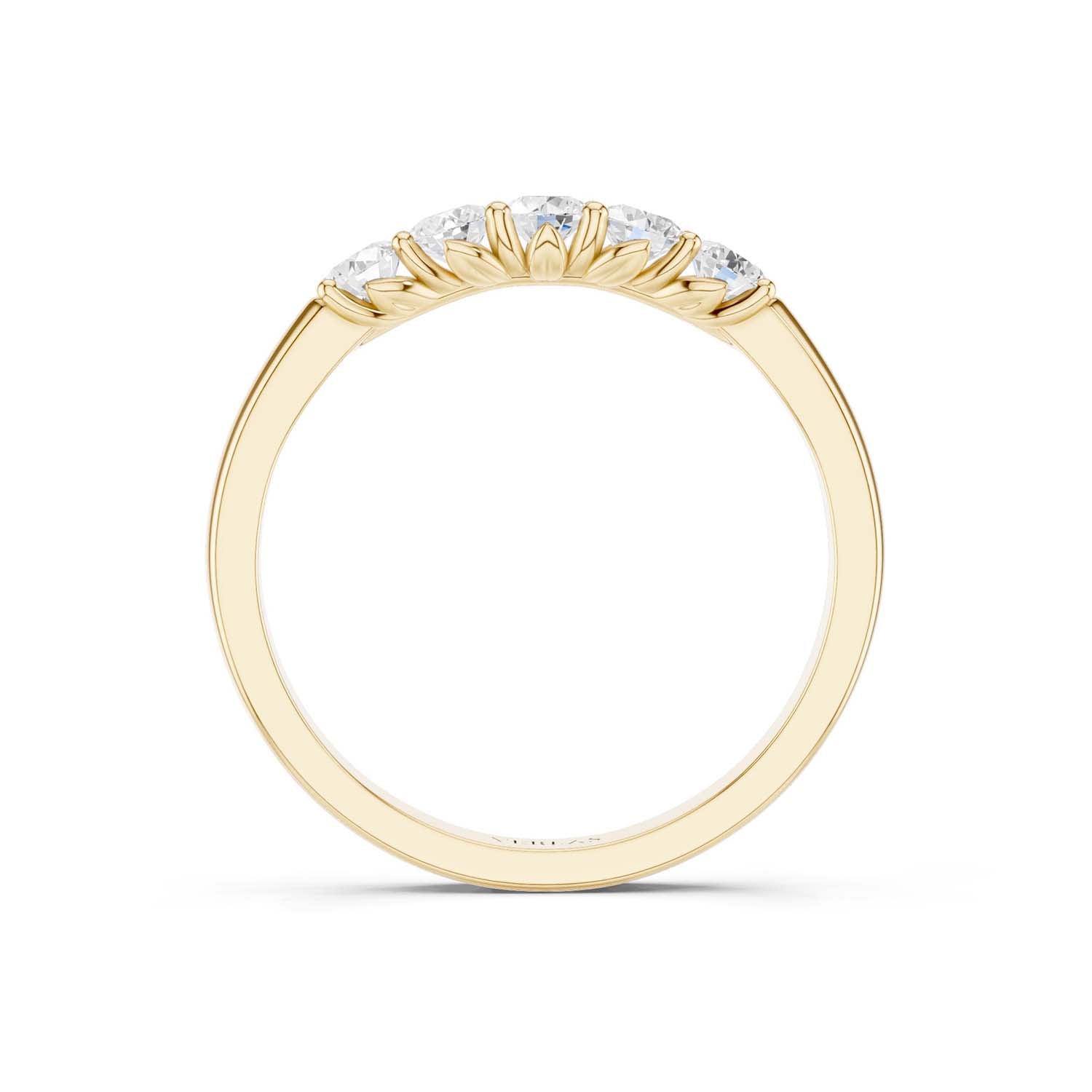 The classic design of this 5-Stone Round Vows ring offers a timeless elegance that transcends trends. Featuring five brilliant round-cut diamonds, carefully nestled next to each other in a secure prong setting, this diamond engagement ring captures hearts and symbolizes the promise of a lifetime.