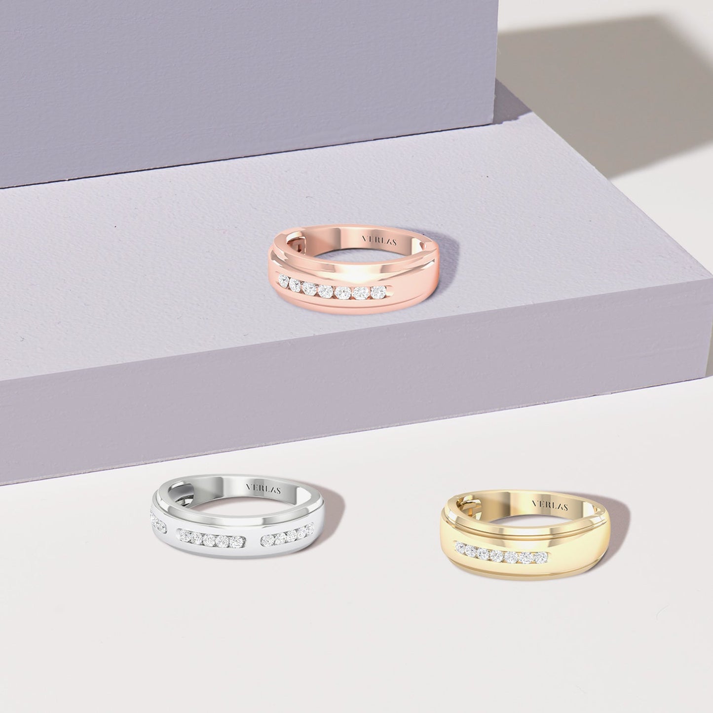 Platinum is an exceptionally durable, bright white, hypoallergenic metal that’s 30 times rarer than gold. At 95% purity, Verlas platinum is the ideal canvas to make diamonds and intricate engravings pop to the fullest.