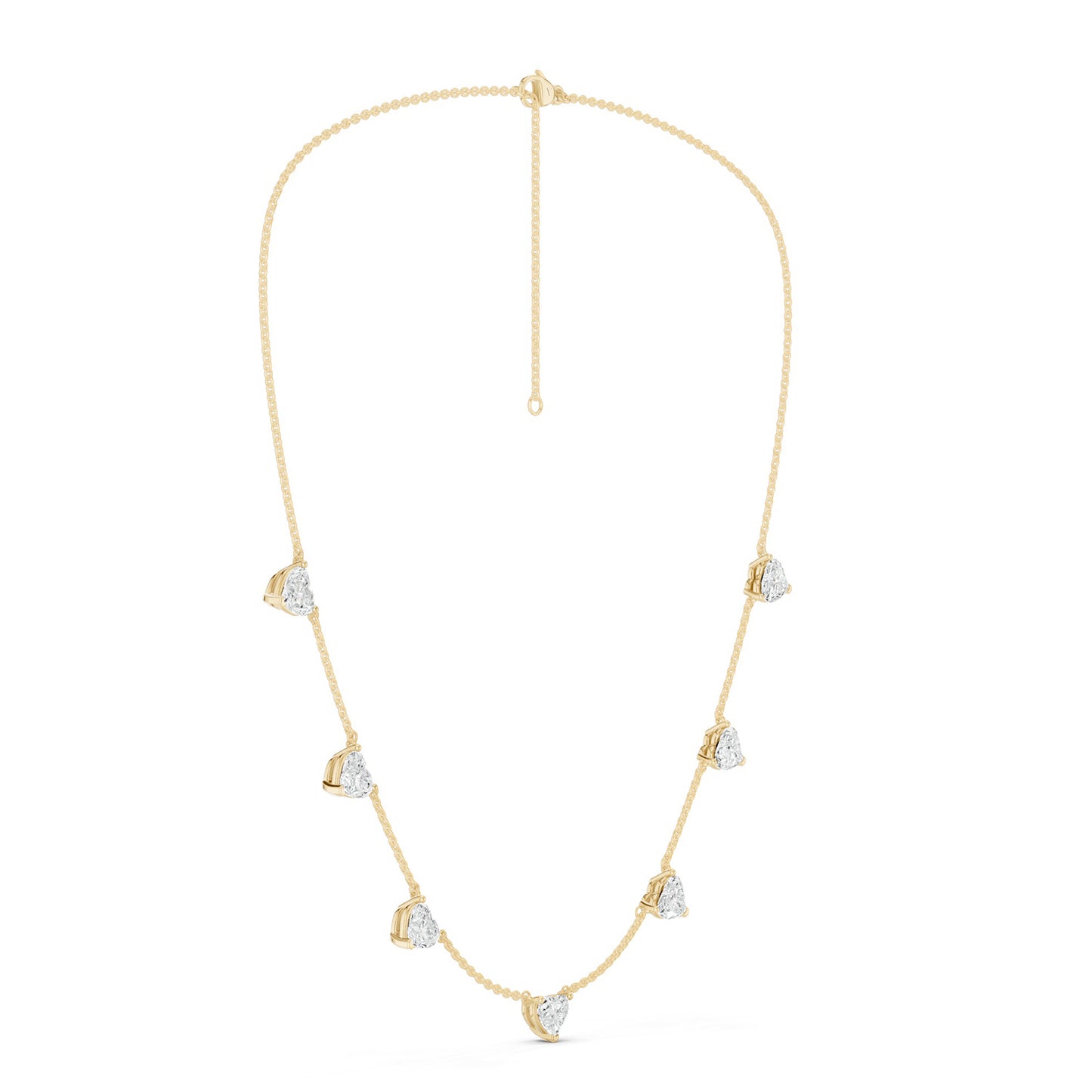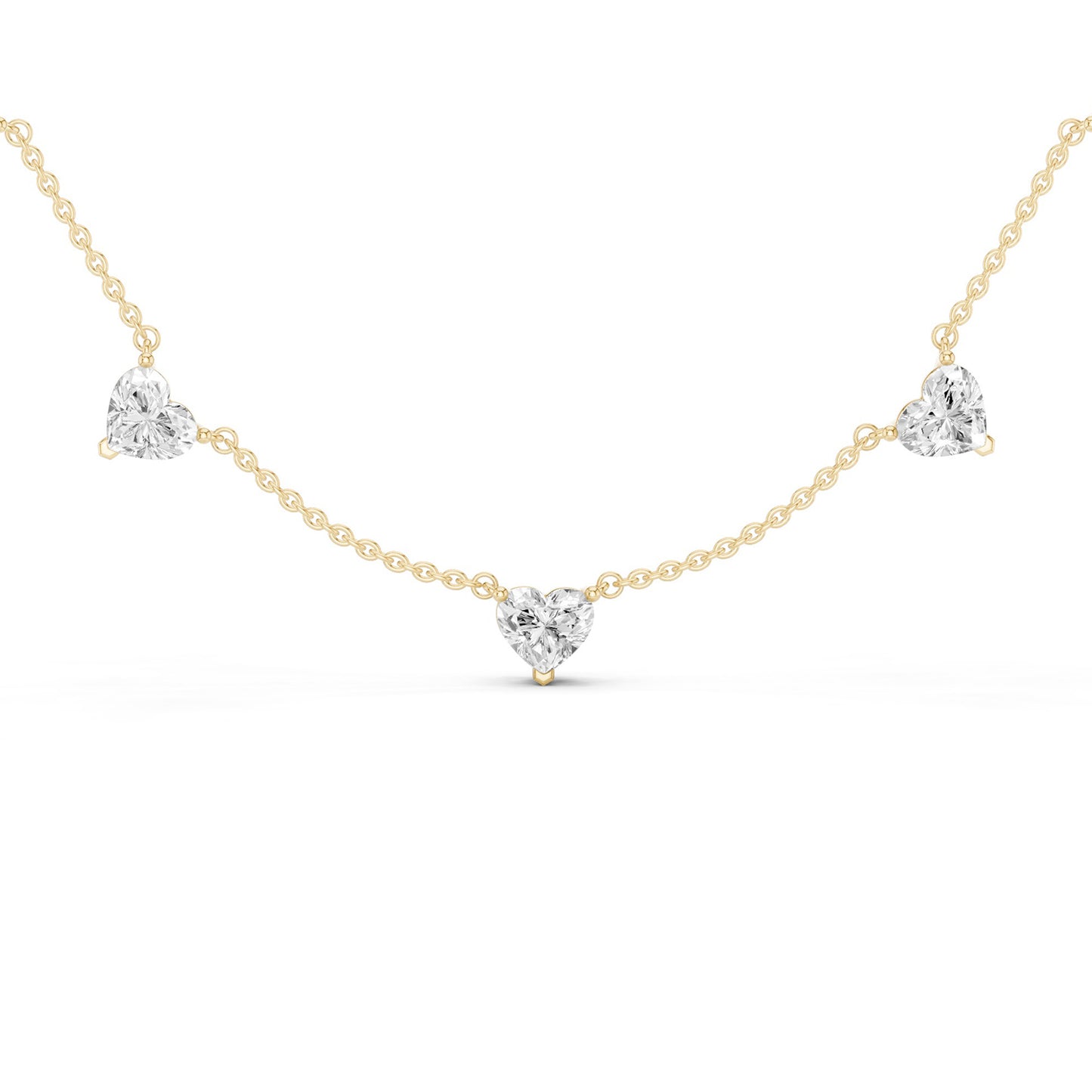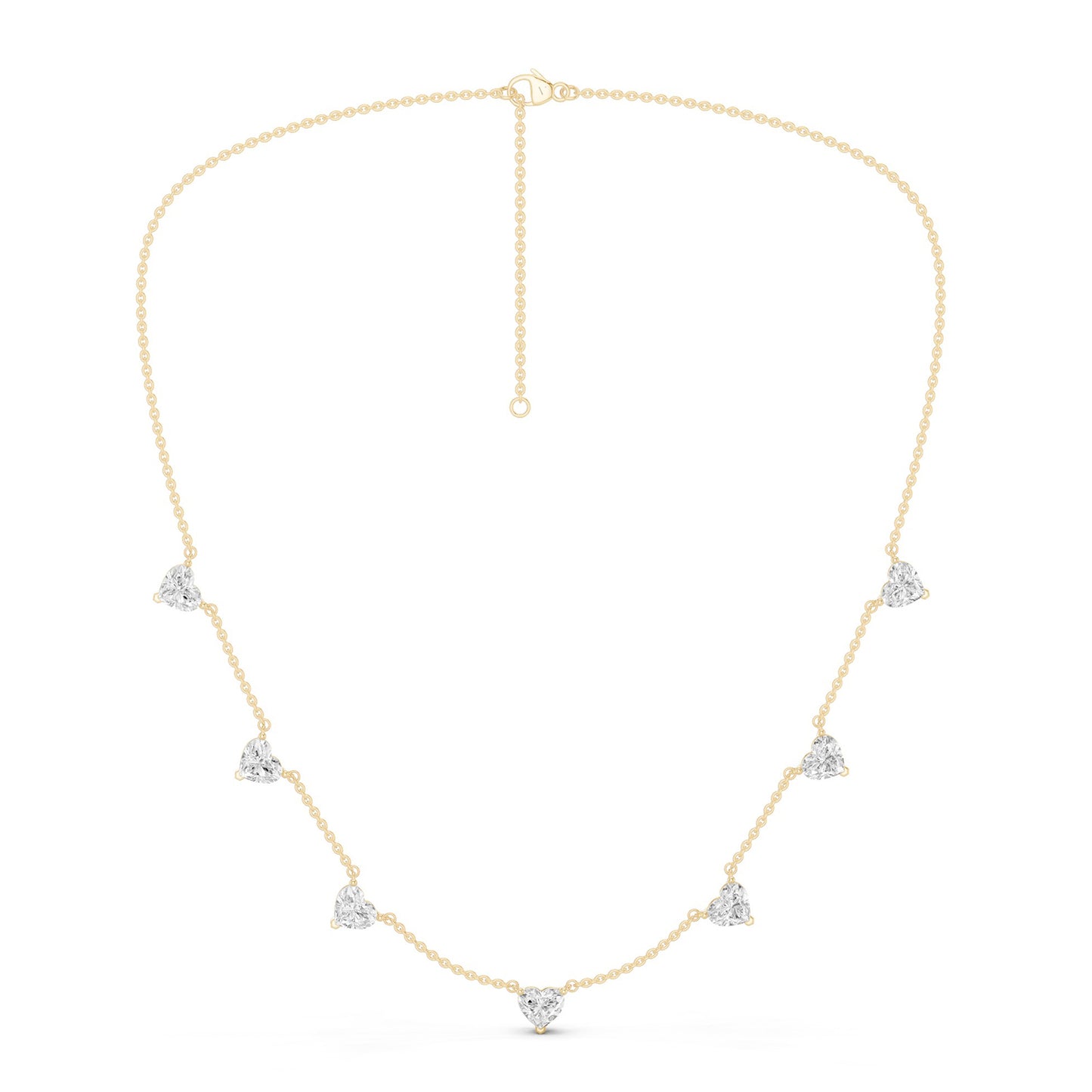 The 7-Stone Heart Diamond Necklace features seven heart-shaped lab-grown diamonds, each elegantly set in secure prong settings and spaced apart for a minimalist yet striking design. This diamond necklace embodies love and grace, making it perfect for special occasions or everyday wear.