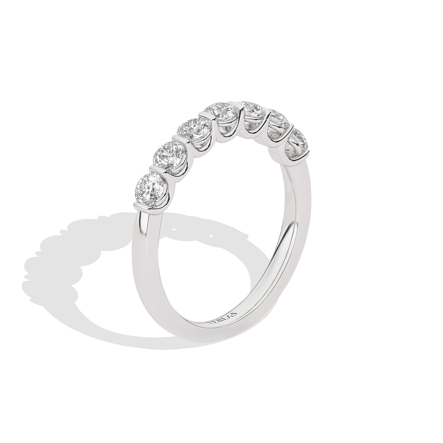 The 7-Stone Keepsake Vows ring is a beautiful representation of love and commitment. With seven round diamonds set in a stunning gold band, this ring captures the essence of everlasting love. Its exquisite design and flawless craftsmanship make it a cherished piece for a lifetime.