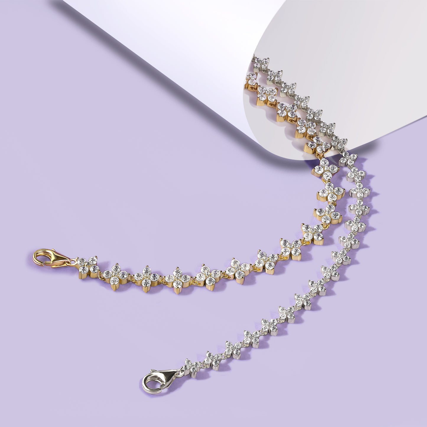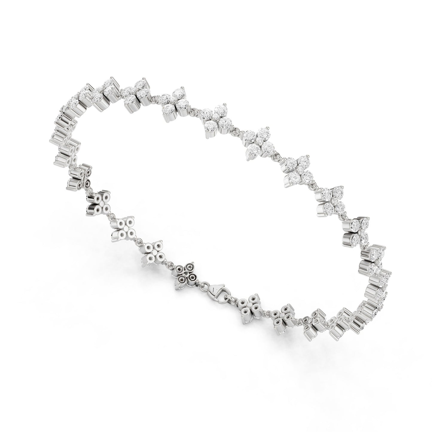 A design so intricate that it rivals a blooming garden, the Alyssa Blossom Tennis Bracelet celebrates the beautiful motifs found in nature. This enthralling bracelet is intricately designed with round brilliant cut diamonds set in a delicate floral pattern. Designed to make a statement, this timeless diamond tennis bracelet adds a touch of luxury to your every look.