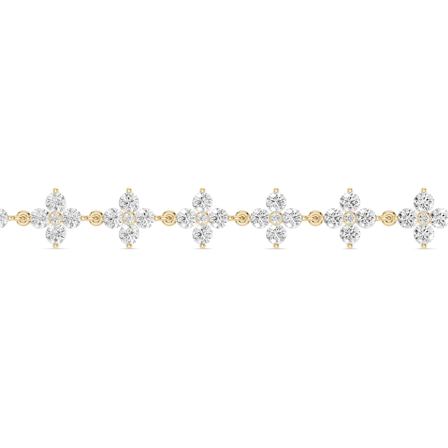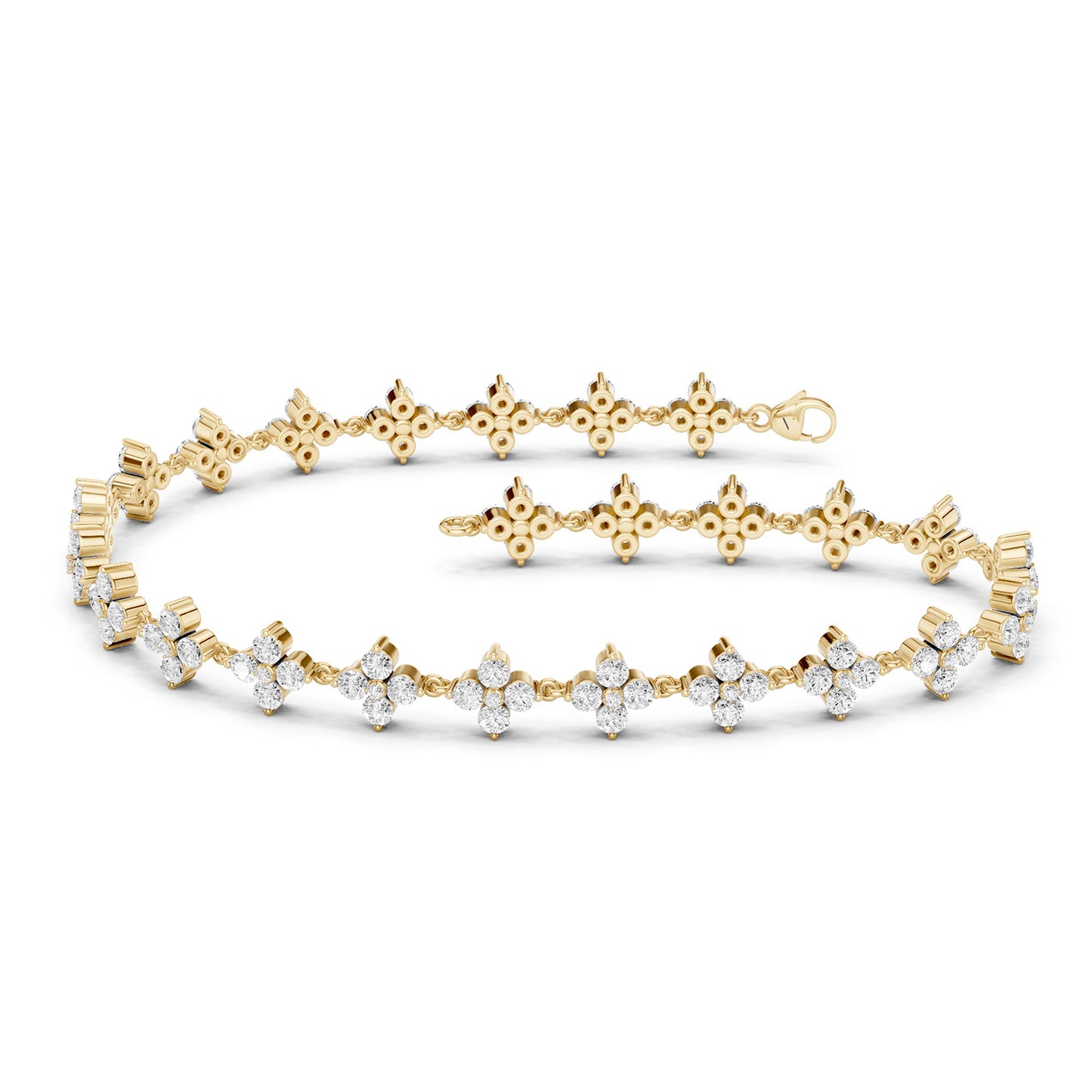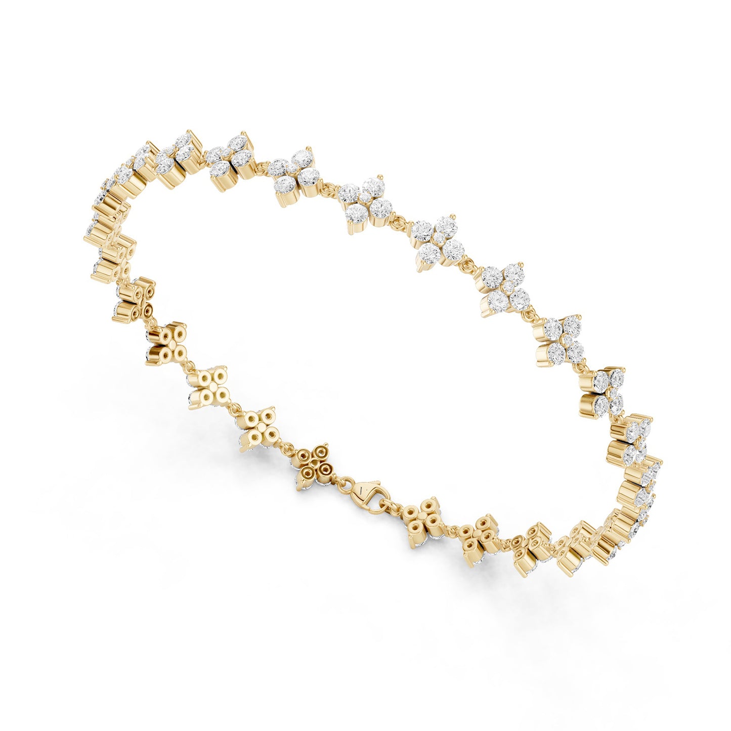 A design so intricate that it rivals a blooming garden, the Alyssa Blossom Tennis Bracelet celebrates the beautiful motifs found in nature. This enthralling bracelet is intricately designed with round brilliant cut diamonds set in a delicate floral pattern. Designed to make a statement, this timeless diamond tennis bracelet adds a touch of luxury to your every look.