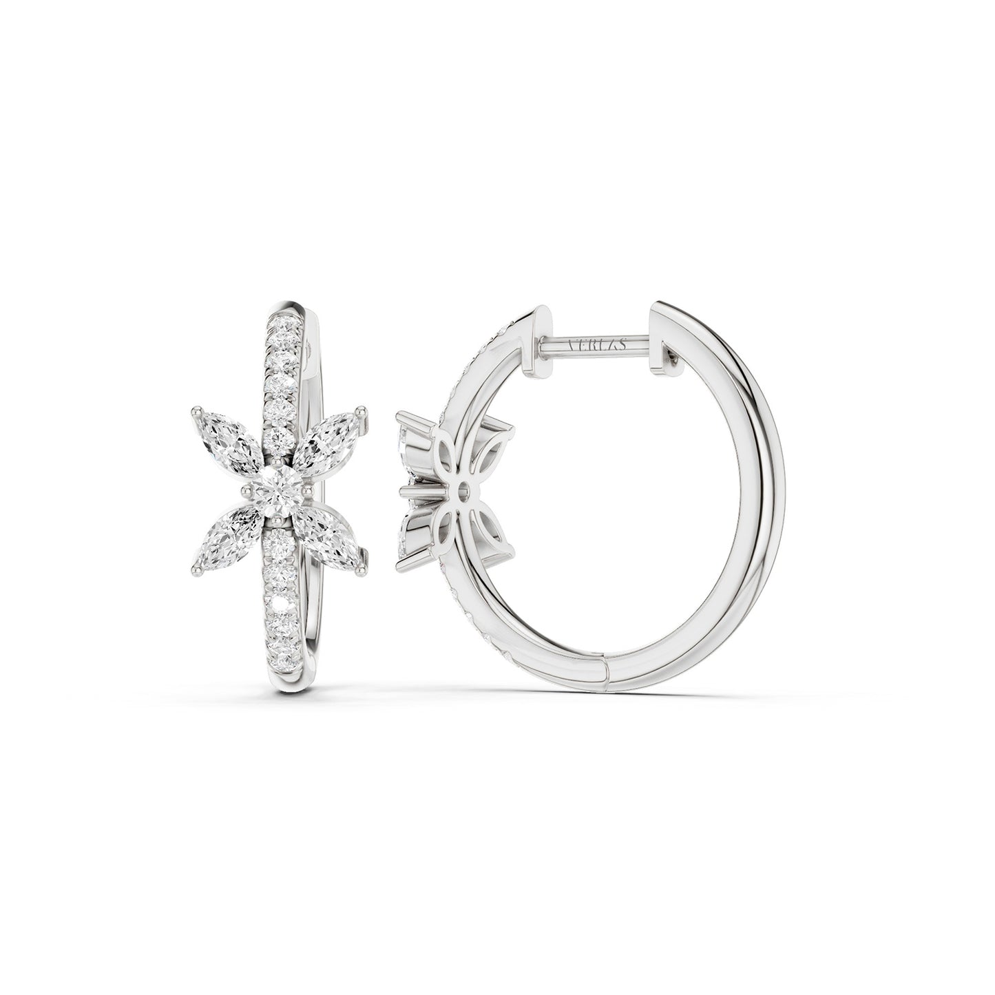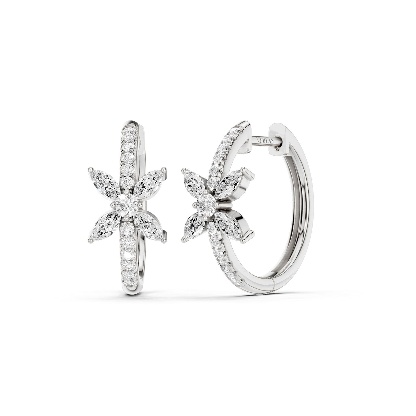 Discover the elegance of the Alyssa Empowered Marquise Floral Hoops where each hoop features a central diamond floret, beautifully embellished with marquise-cut diamonds set in a graceful floral pave pattern. These diamond hoop earrings capture the refined charm of the f. . . Read More