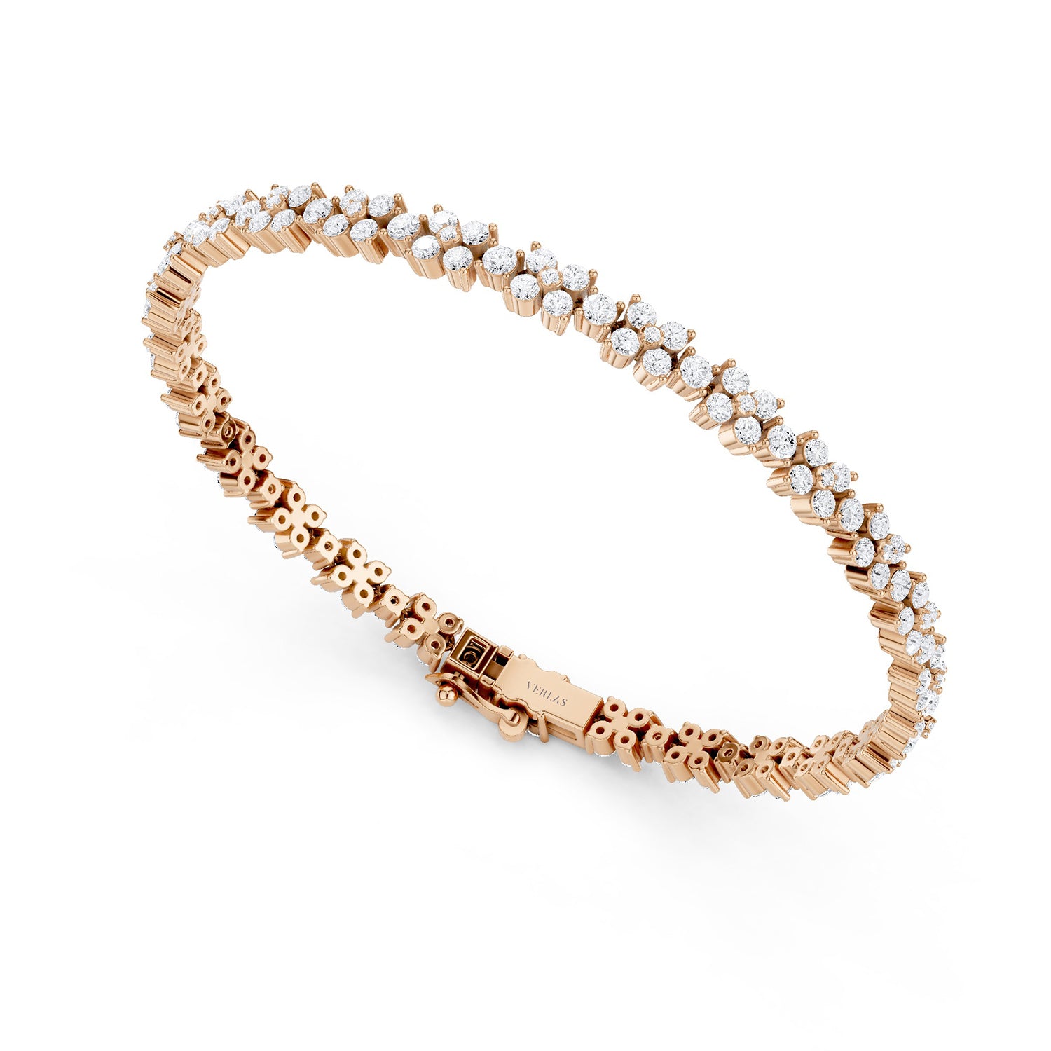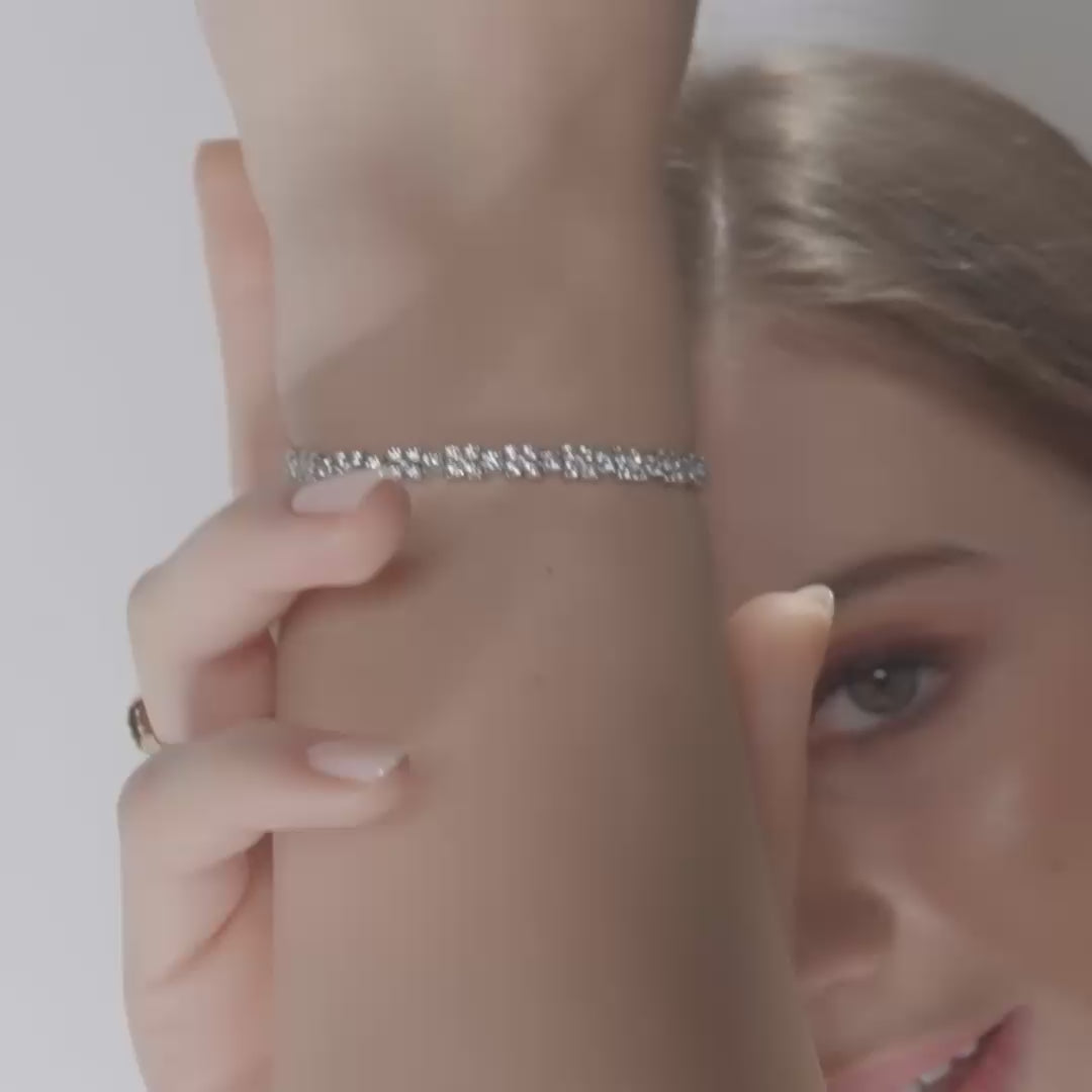 The Alyssa Floral Tennis Bracelet adorns your wrist with 25 florets of diamonds, showering those around you with the nature-inspired beauty of the Alyssa collection. The diamonds are set in a bracelet of solid gold that is secured around your wrist with a GB clasp. An intricate and alluring statement piece, our Alyssa Bouquet Tennis Bracelet is bound to turn heads as you venture forth.