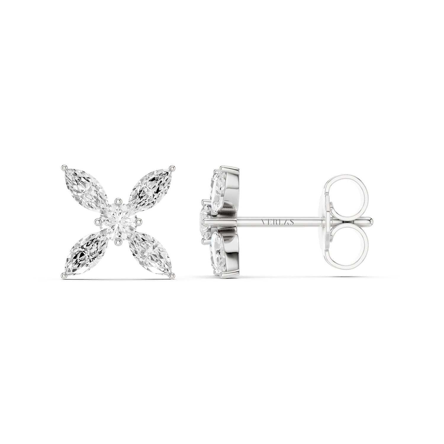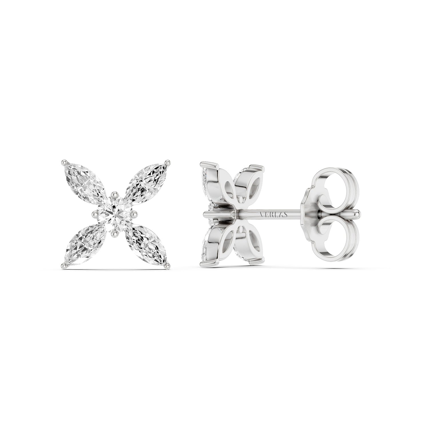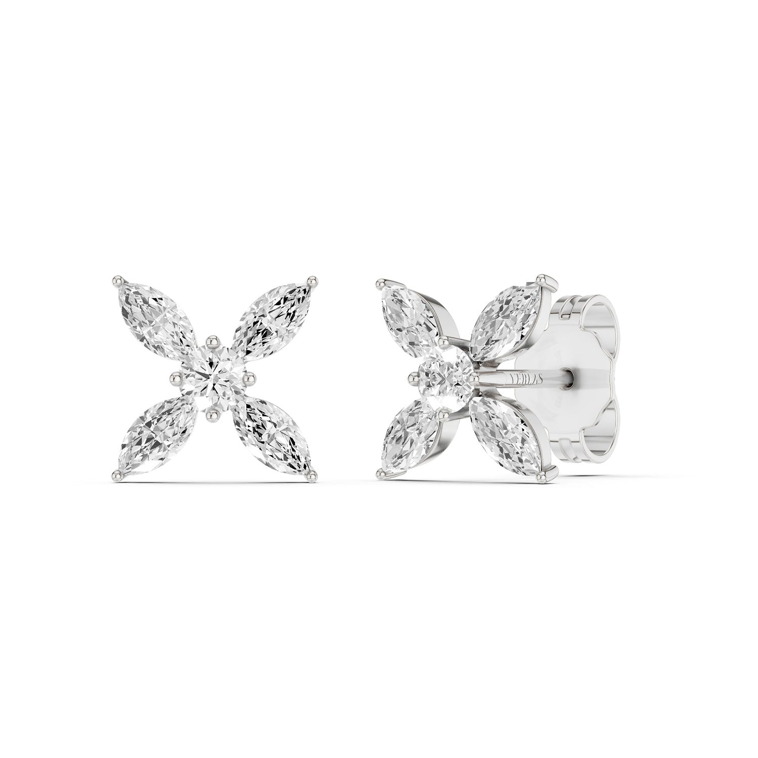 Embrace modern elegance with the Alyssa Marquise Studs, a testament to innovative design and sustainable craftsmanship. These diamond earrings showcase marquise-cut lab-grown diamonds arranged in a dynamic X-shaped pattern, forming a unique floral motif. At the heart of each stud, a dazzling round diamond captures attention with its brilliance. This striking combination of shapes and sustainable materials creates a sophisticated accessory that adds a touch of glamour to any outfit, reflecting your unique style.