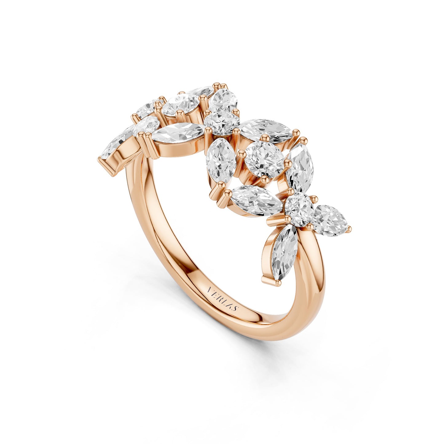 Elevate your elegance with the Alyssa Tres Bouquet Ring. This stunning ring features three diamond florets, each beautifully crafted with marquise diamond petals and a round diamond at the center. each floret is connected by a single lab-grown round diamond, creating a harmonious and chic look. Perfect for those who love to make a statement, this diamond ring combines luxurious craftsmanship with a touch of whimsical charm, turning any occasion into a memorable affair.