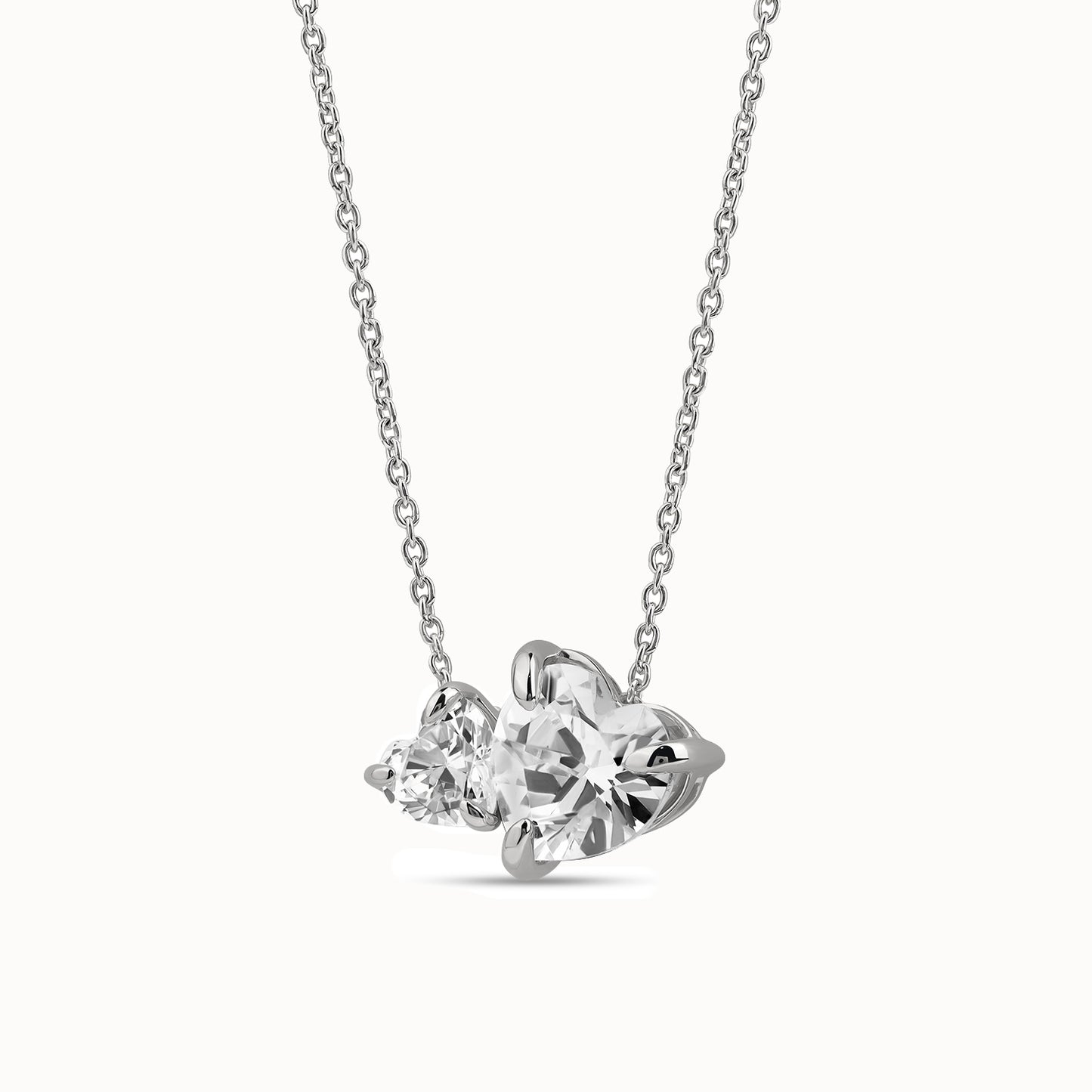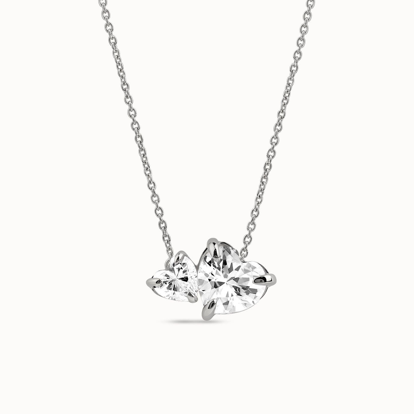 Asymmetrical Heart Diamond Toi et Moi Necklace