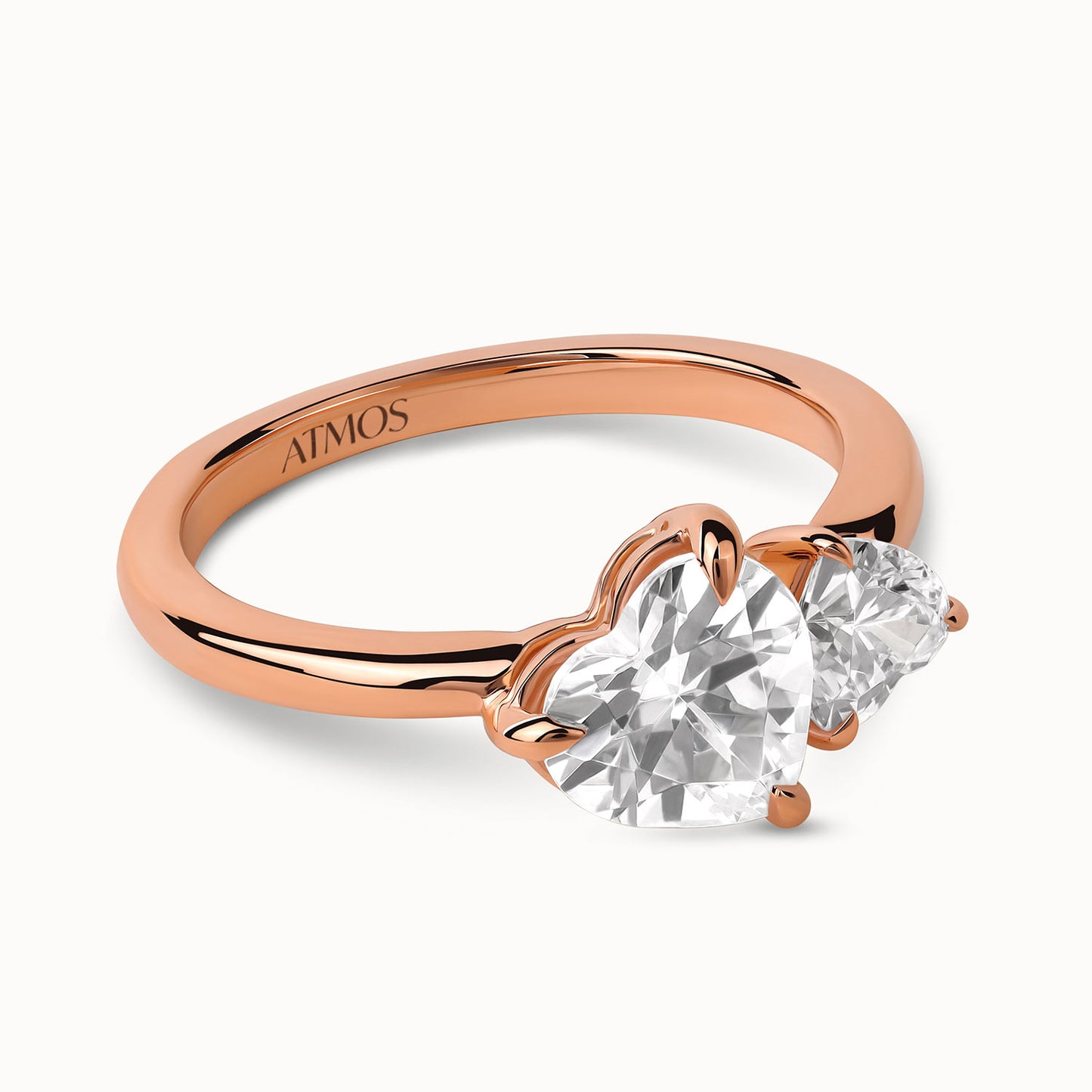 Asymmetrical Heart Diamond Toi et Moi Ring