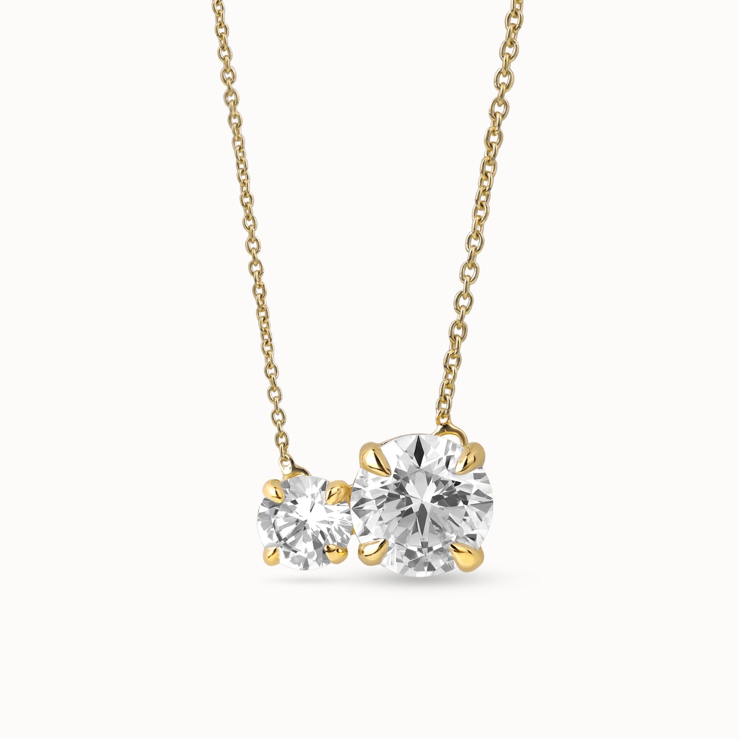 Embrace modern elegance with this two stone-styled Toi et Moi necklace. The brilliant round lab-grown diamonds, one big, one small, are the centerpiece, symbolizing your unique connection and caring nature. An understated piece that offers a contemporary twist on a classic design, this necklace is a perfect accessory for any occasion.