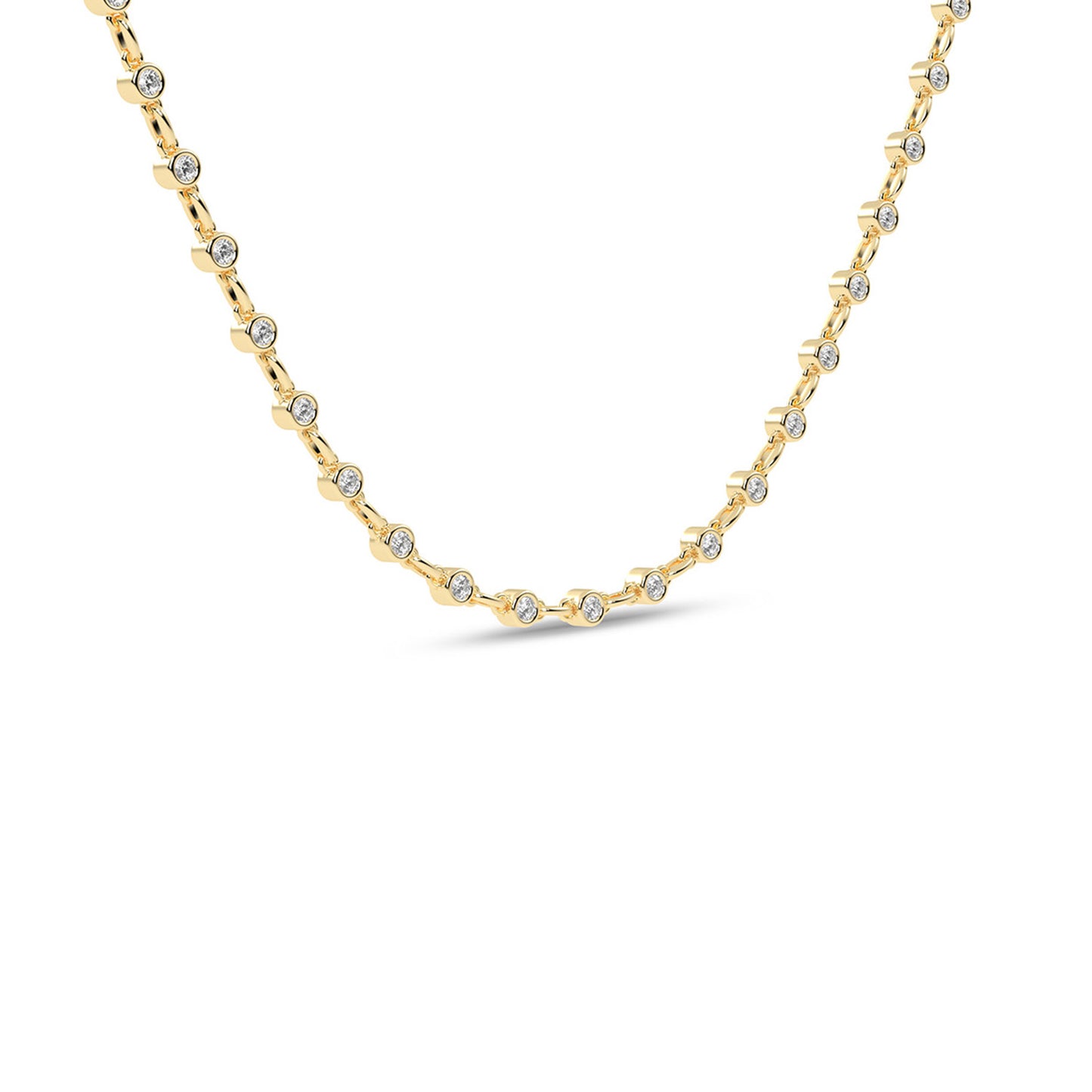 Add a classy touch to your outfit with this stunning tennis necklace featuring a row of scintillating high-quality lab-grown diamonds set in a bezel setting. A true classic, this piece has a timeless appeal, making it an excellent gift for oneself or someone you love.