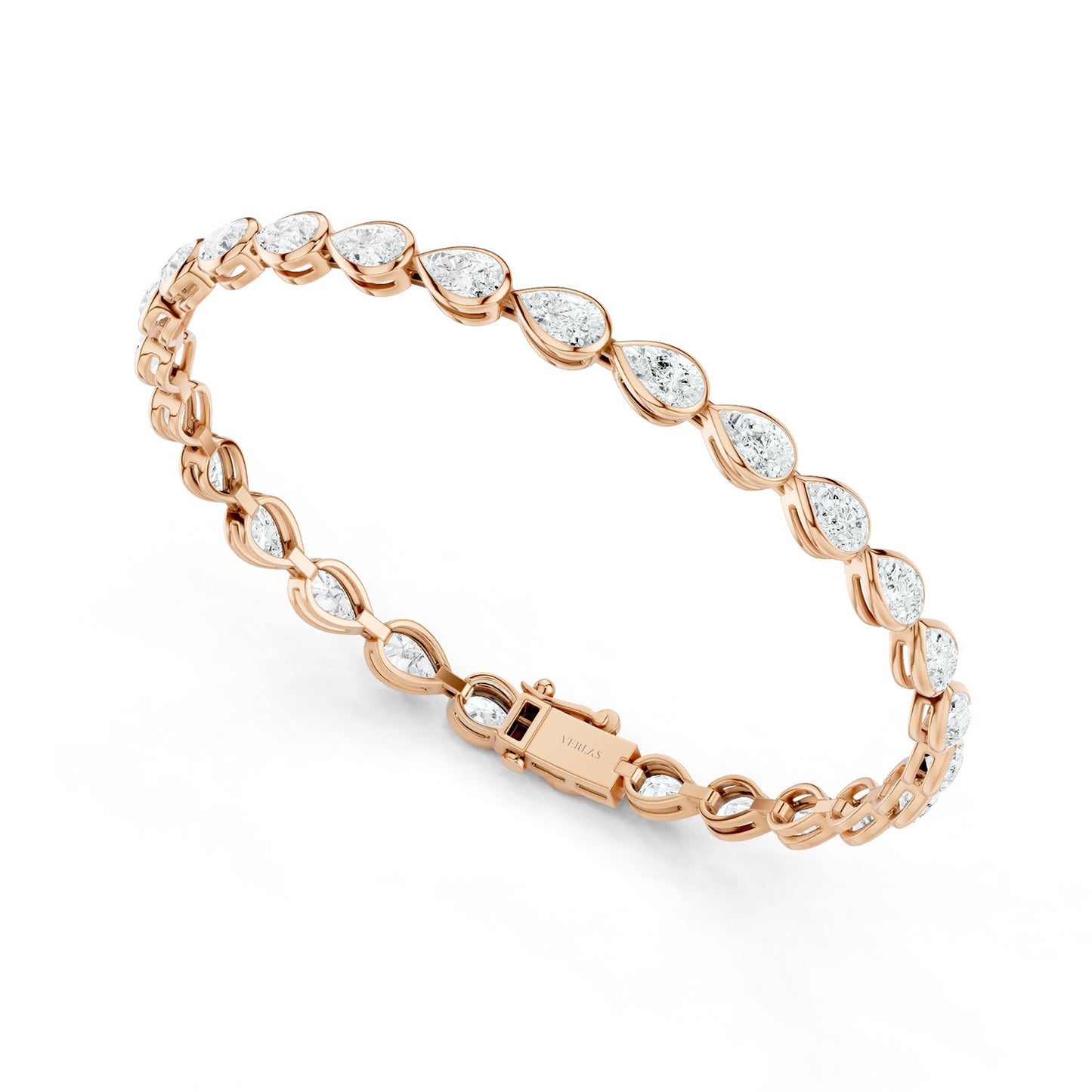 This stunning Bezel-set Pear Diamond Tennis Bracelet features lab-grown pear-shaped diamonds, each encased in a sleek bezel setting that enhances their brilliance while offering a modern, secure design. The bezel setting not only provides durability but also showcases the graceful shape of each diamond, making this piece as practical as it is breathtaking. This tennis bracelet transitions effortlessly from casual coffee dates to glamorous evening events. Whether you're pairing it with a minimalist watch or stacking it with other bracelets, this diamond bracelet is your go-to for timeless sophistication.