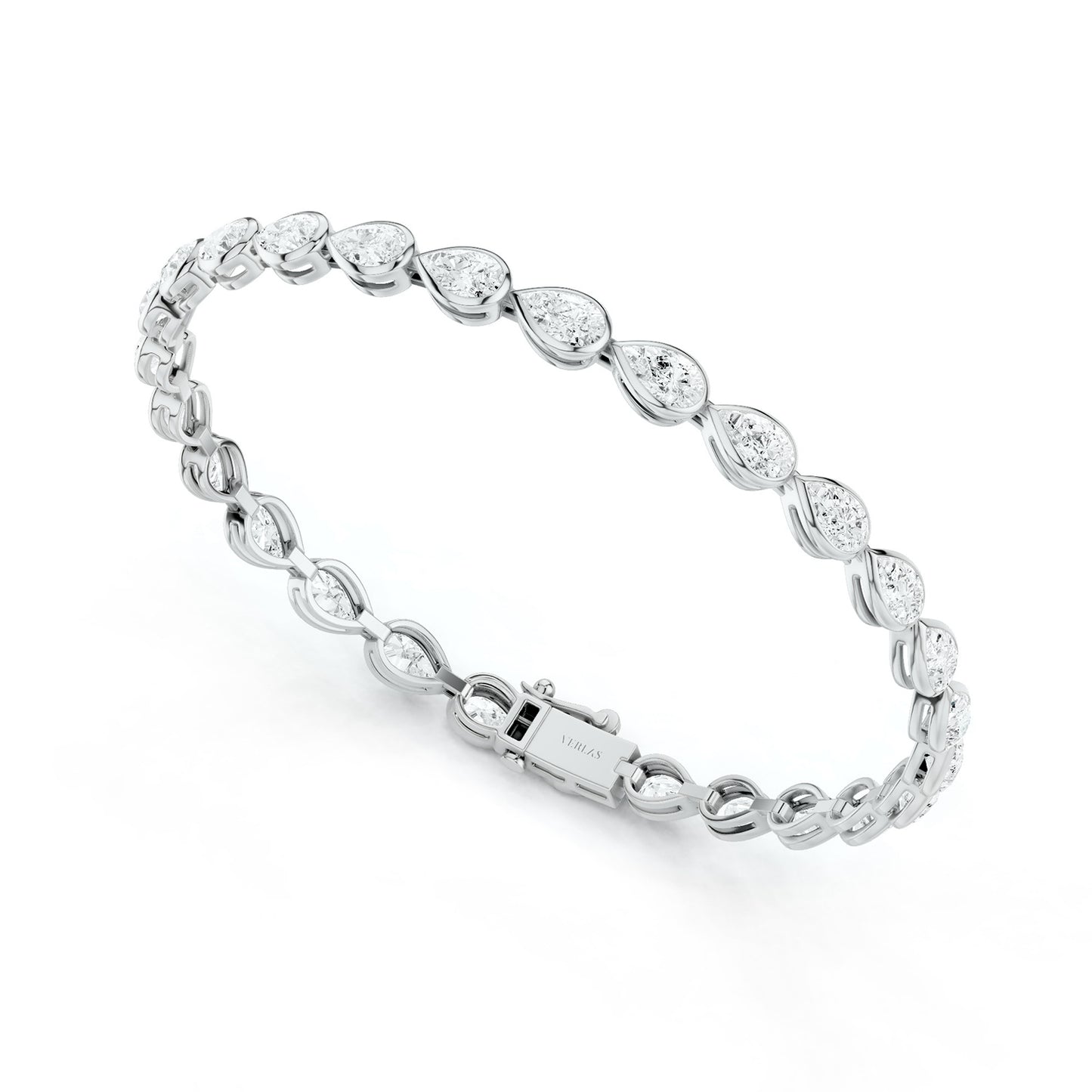 This stunning Bezel-set Pear Diamond Tennis Bracelet features lab-grown pear-shaped diamonds, each encased in a sleek bezel setting that enhances their brilliance while offering a modern, secure design. The bezel setting not only provides durability but also showcases the graceful shape of each diamond, making this piece as practical as it is breathtaking. This tennis bracelet transitions effortlessly from casual coffee dates to glamorous evening events. Whether you're pairing it with a minimalist watch or stacking it with other bracelets, this diamond bracelet is your go-to for timeless sophistication.