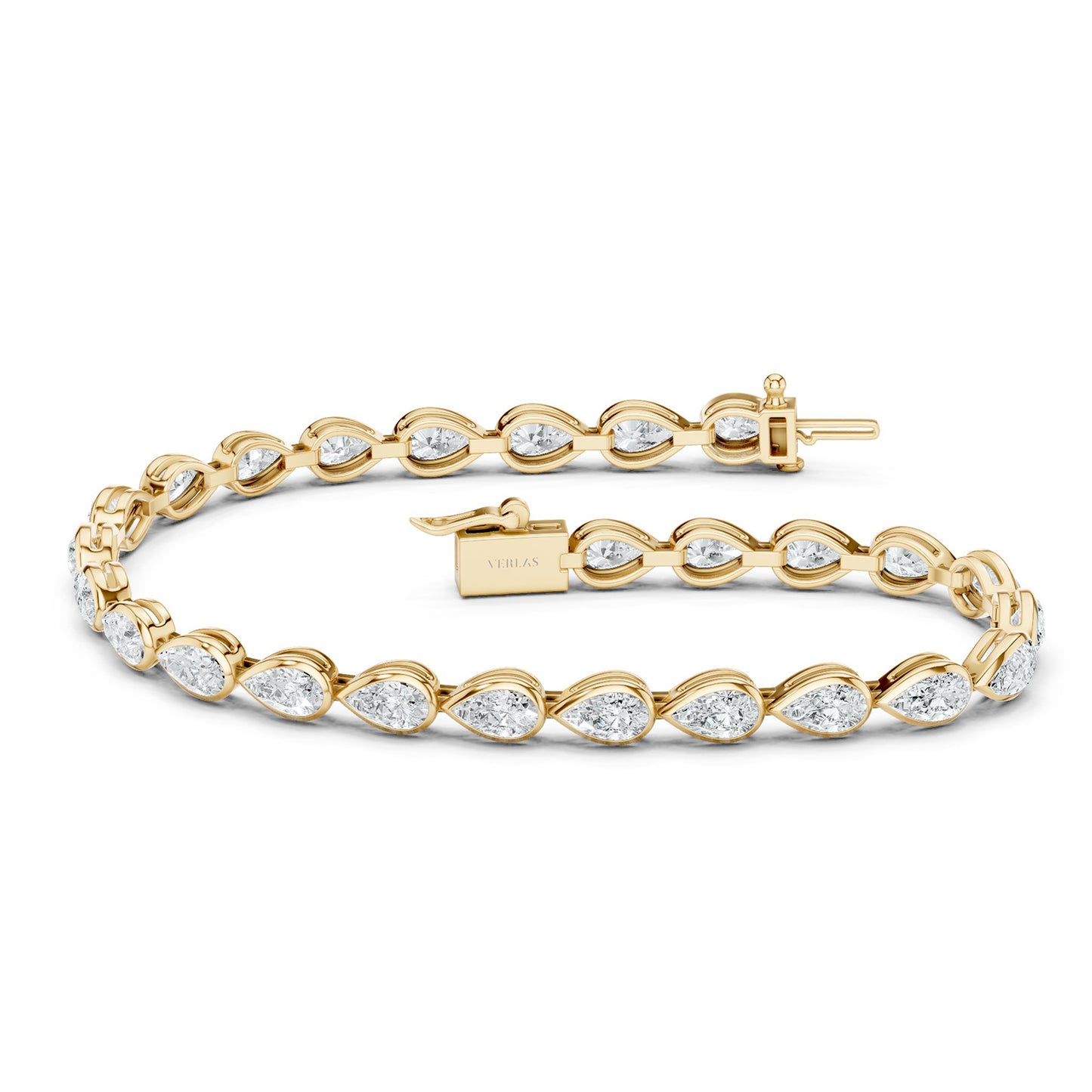 This stunning Bezel-set Pear Diamond Tennis Bracelet features lab-grown pear-shaped diamonds, each encased in a sleek bezel setting that enhances their brilliance while offering a modern, secure design. The bezel setting not only provides durability but also showcases the graceful shape of each diamond, making this piece as practical as it is breathtaking. This tennis bracelet transitions effortlessly from casual coffee dates to glamorous evening events. Whether you're pairing it with a minimalist watch or stacking it with other bracelets, this diamond bracelet is your go-to for timeless sophistication.