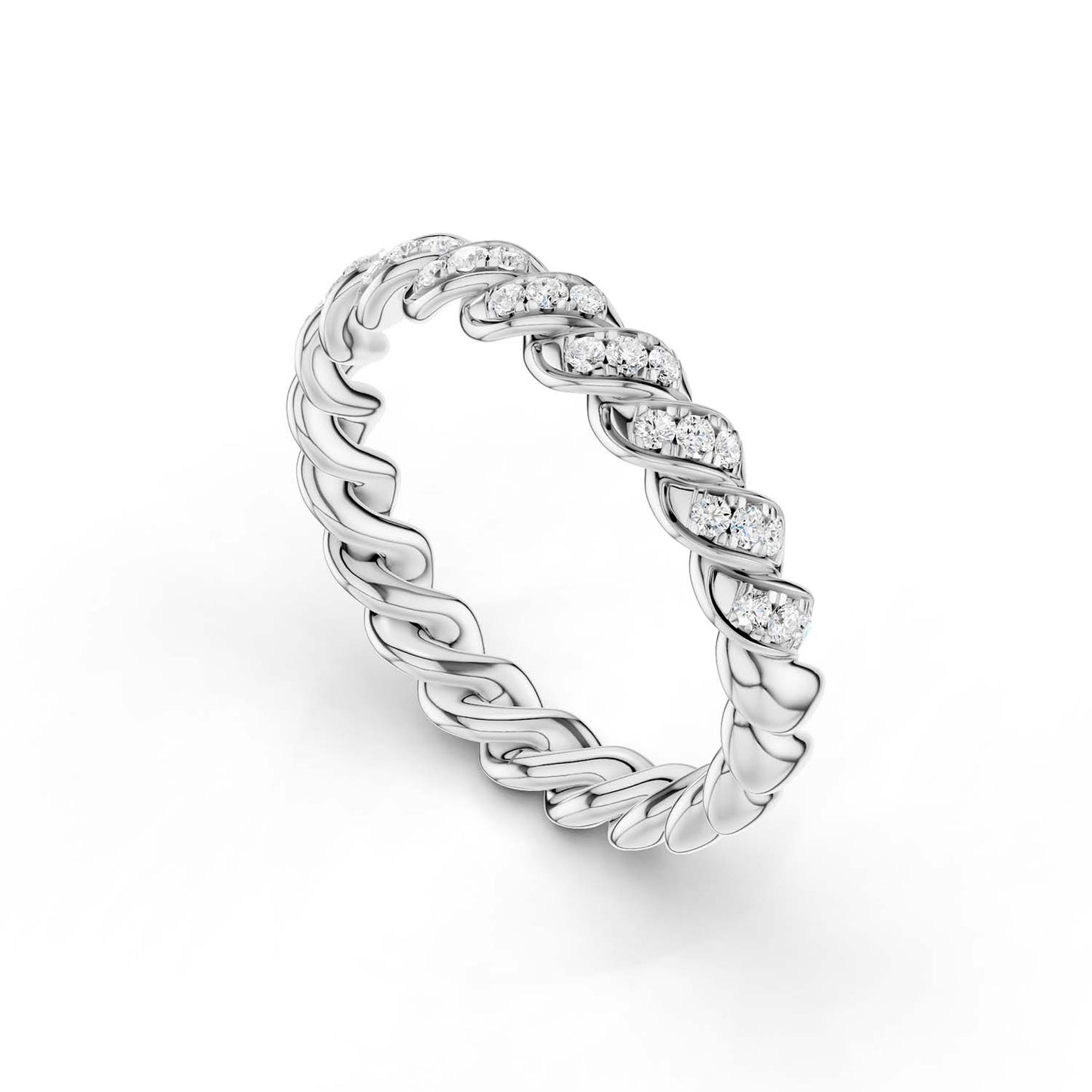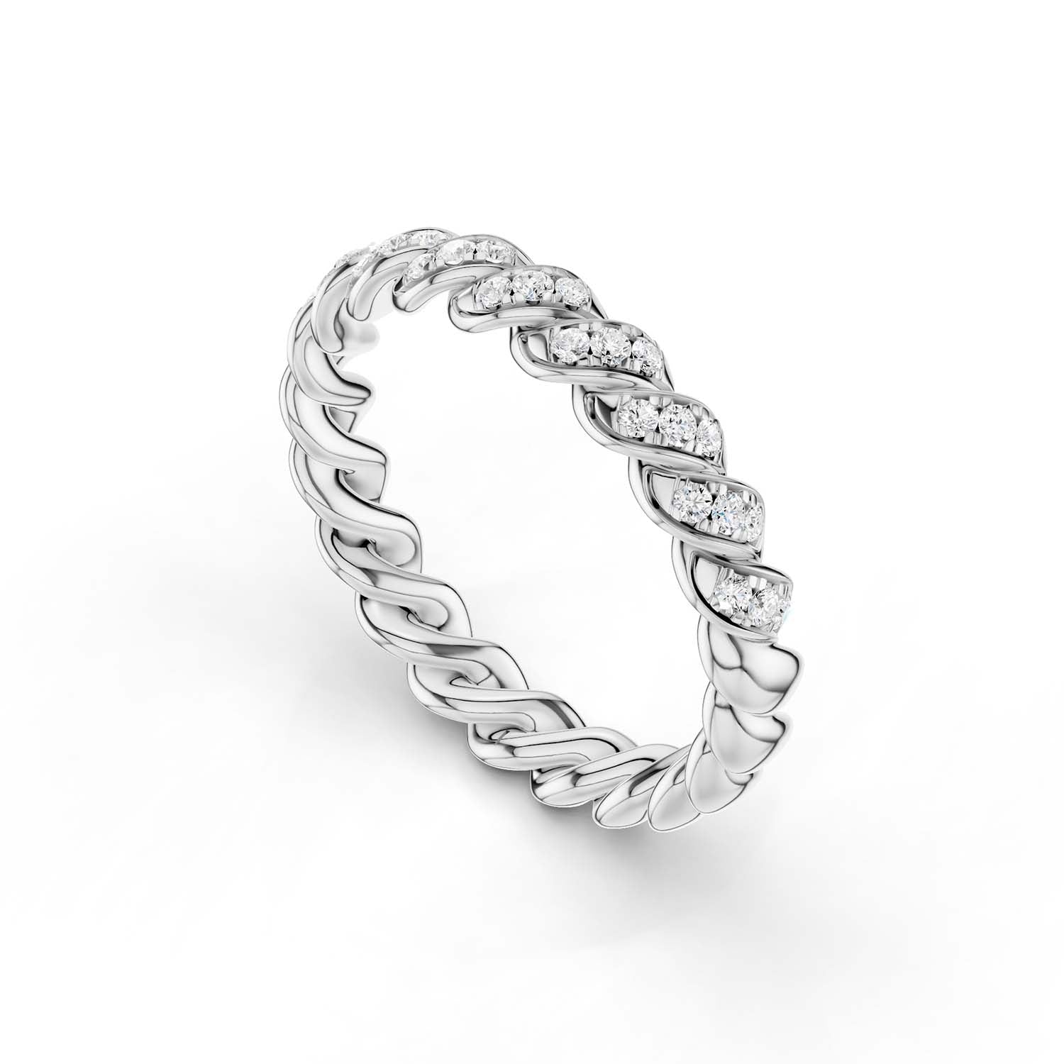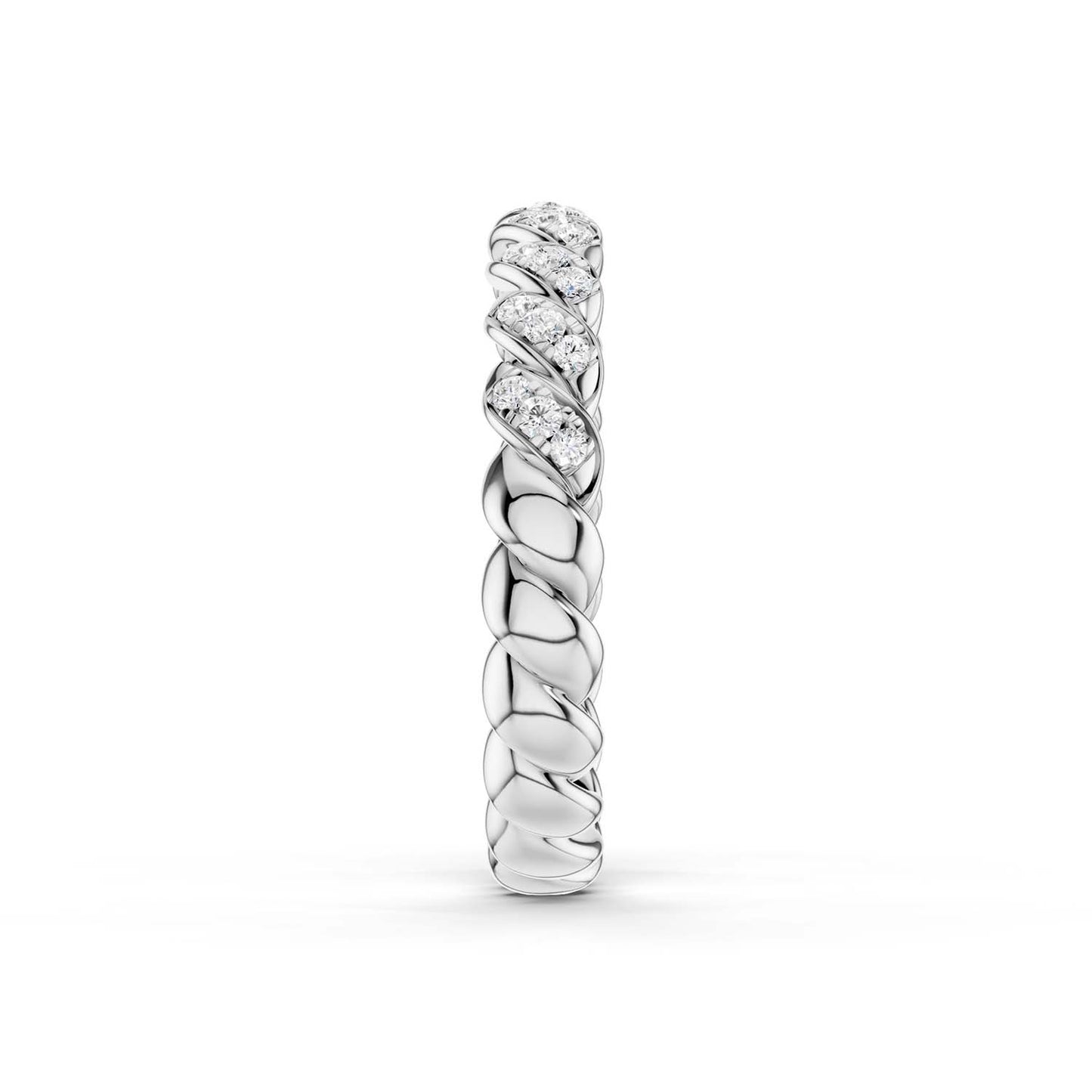 This Braided Band showcases an intricately twisted braid that is a symbol of the unbreakable bond between two souls. The delicate infusion of diamonds along the braided strands catches the eye. This diamond wedding ring is a symbol of the enduring love and commitment that define your special day.