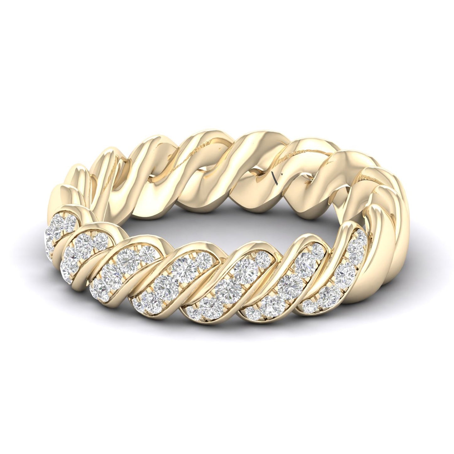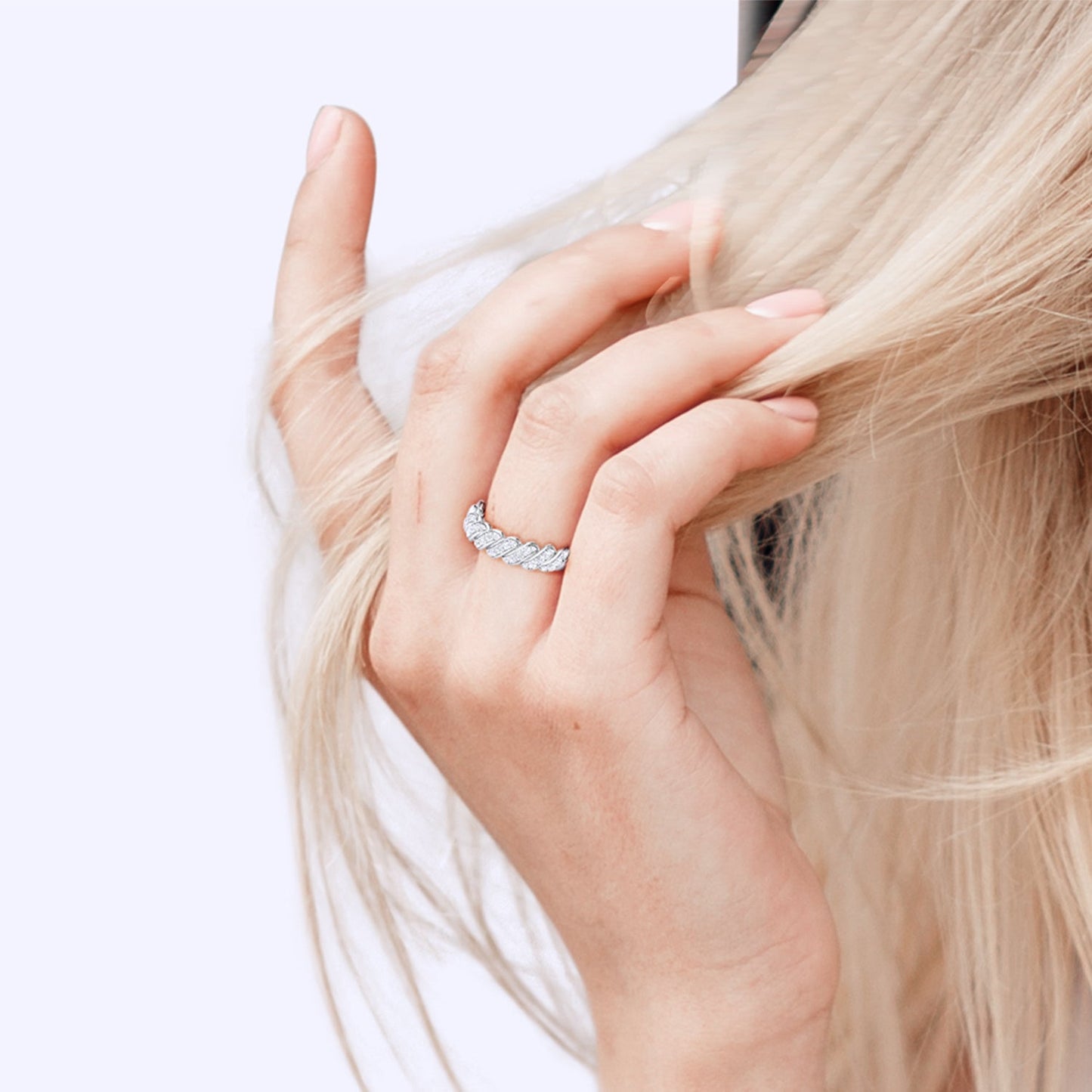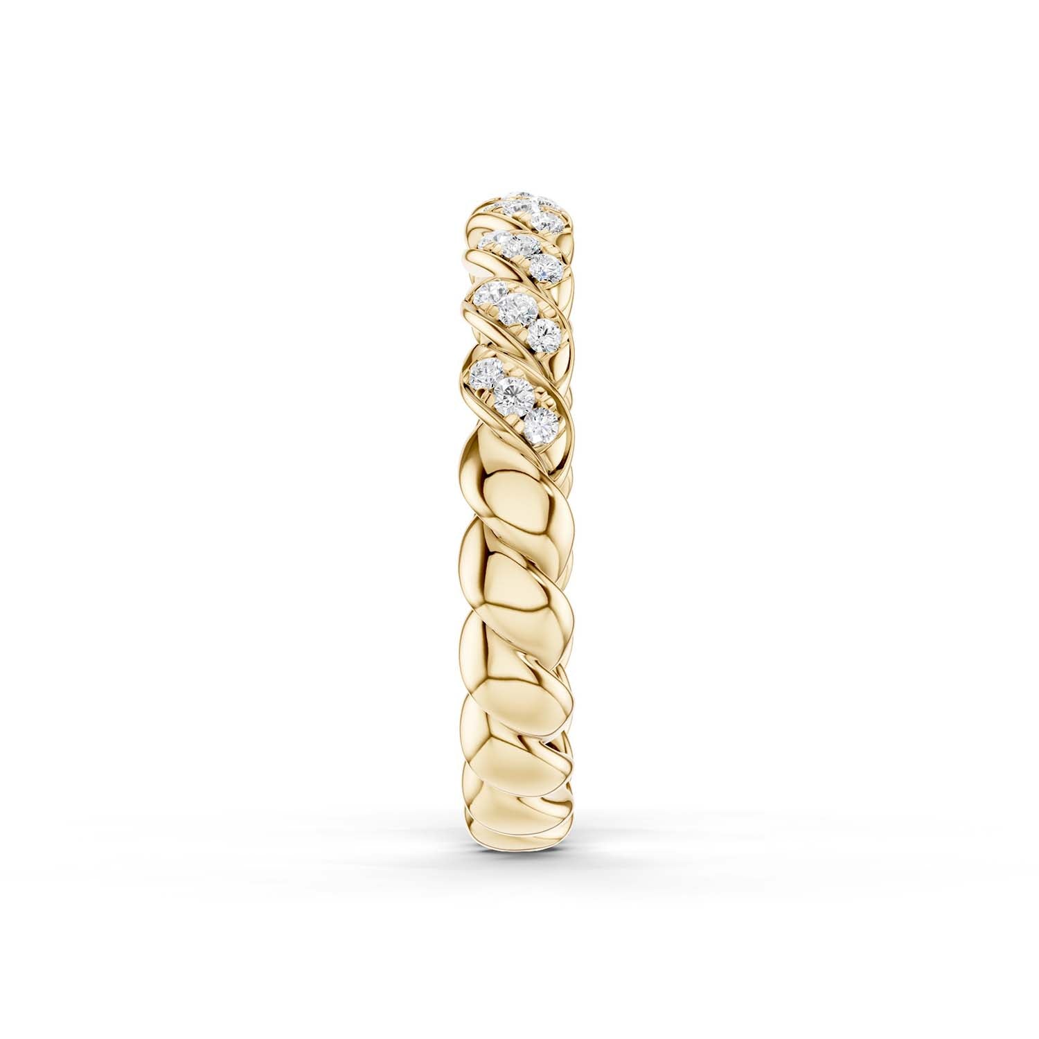 This Braided Band showcases an intricately twisted braid that is a symbol of the unbreakable bond between two souls. The delicate infusion of diamonds along the braided strands catches the eye. This diamond wedding ring is a symbol of the enduring love and commitment that define your special day.