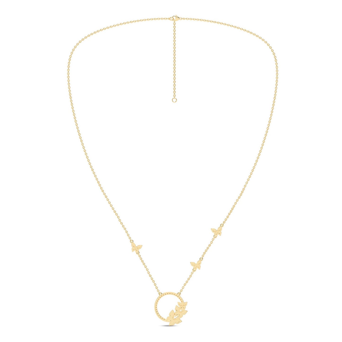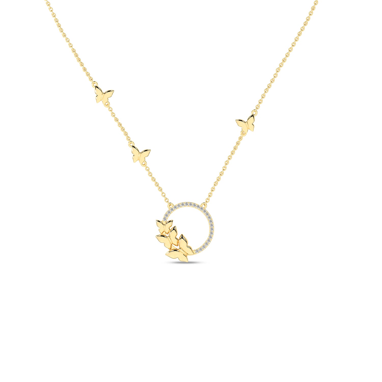 This Butterfly Cluster Necklace boasts a cluster of butterflies, each one delicately carved from pure, shimmering gold. These intricate butterflies dance upon a circular silhouette, forming a stunning centerpiece. Whether you're looking for the perfect gift for a loved one or treating yourself, this diamond pendant necklace is a symbol of love, grace, and sophistication.