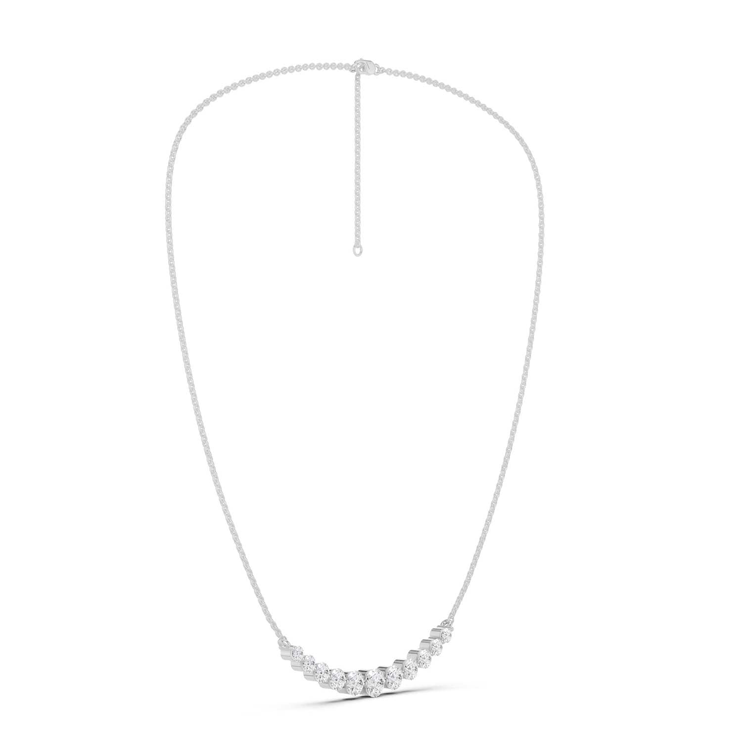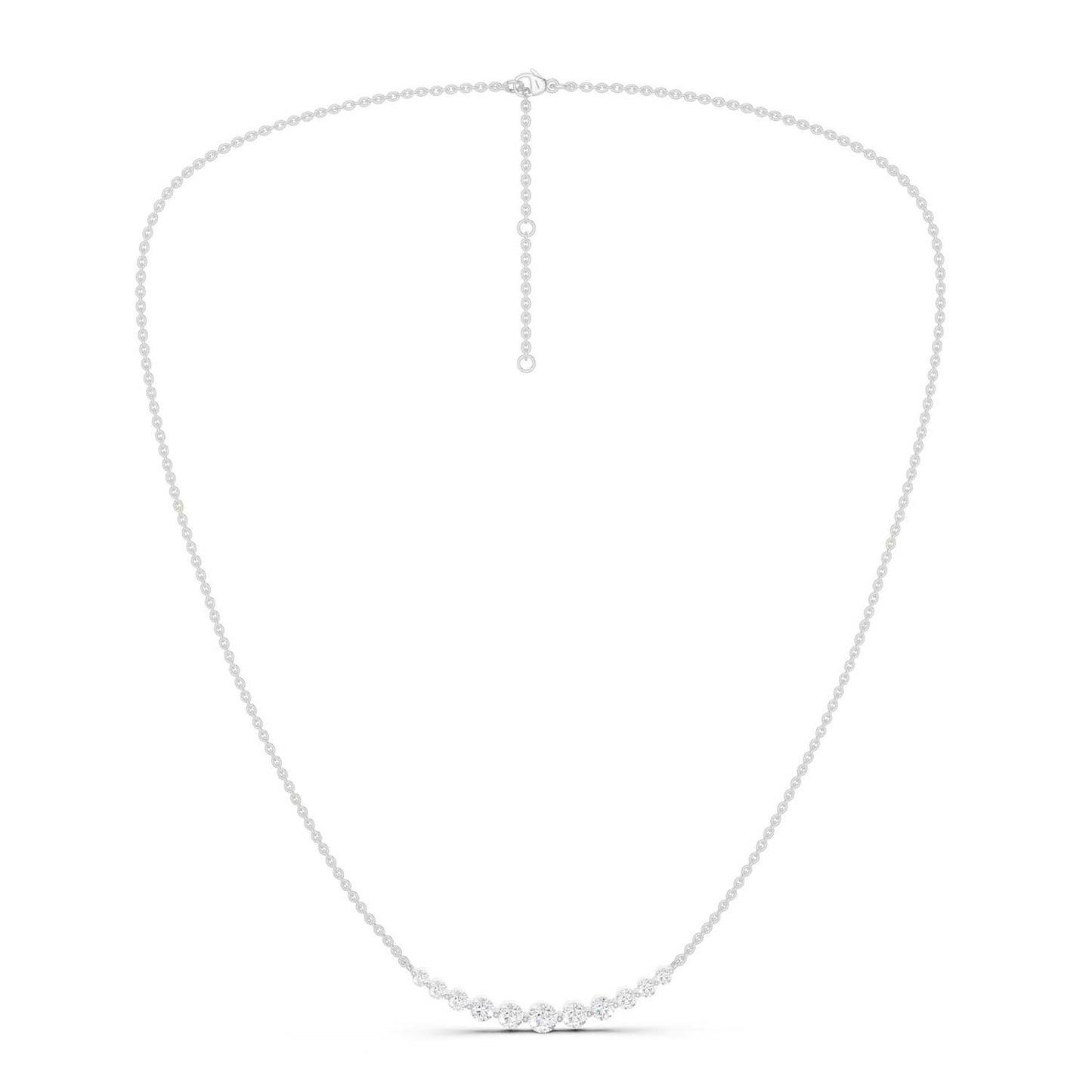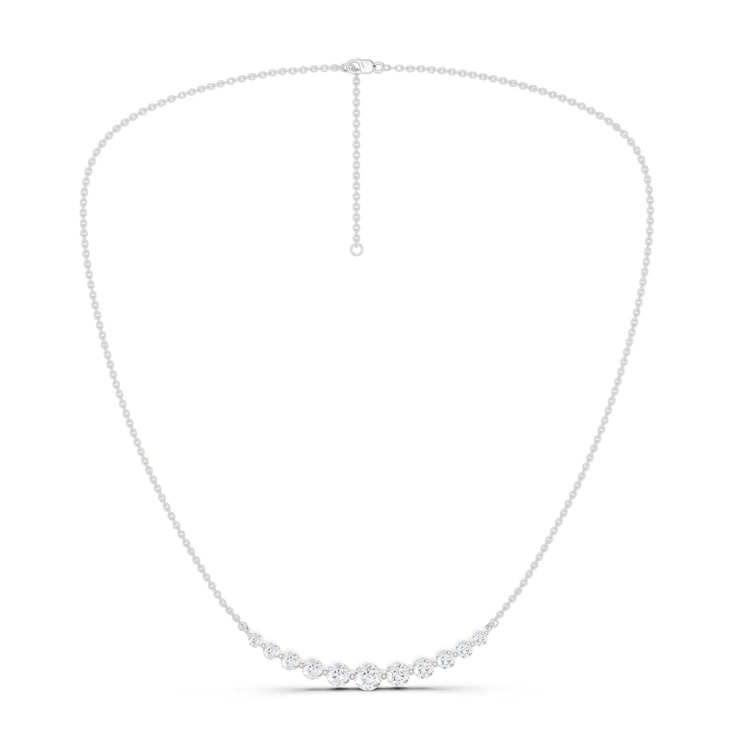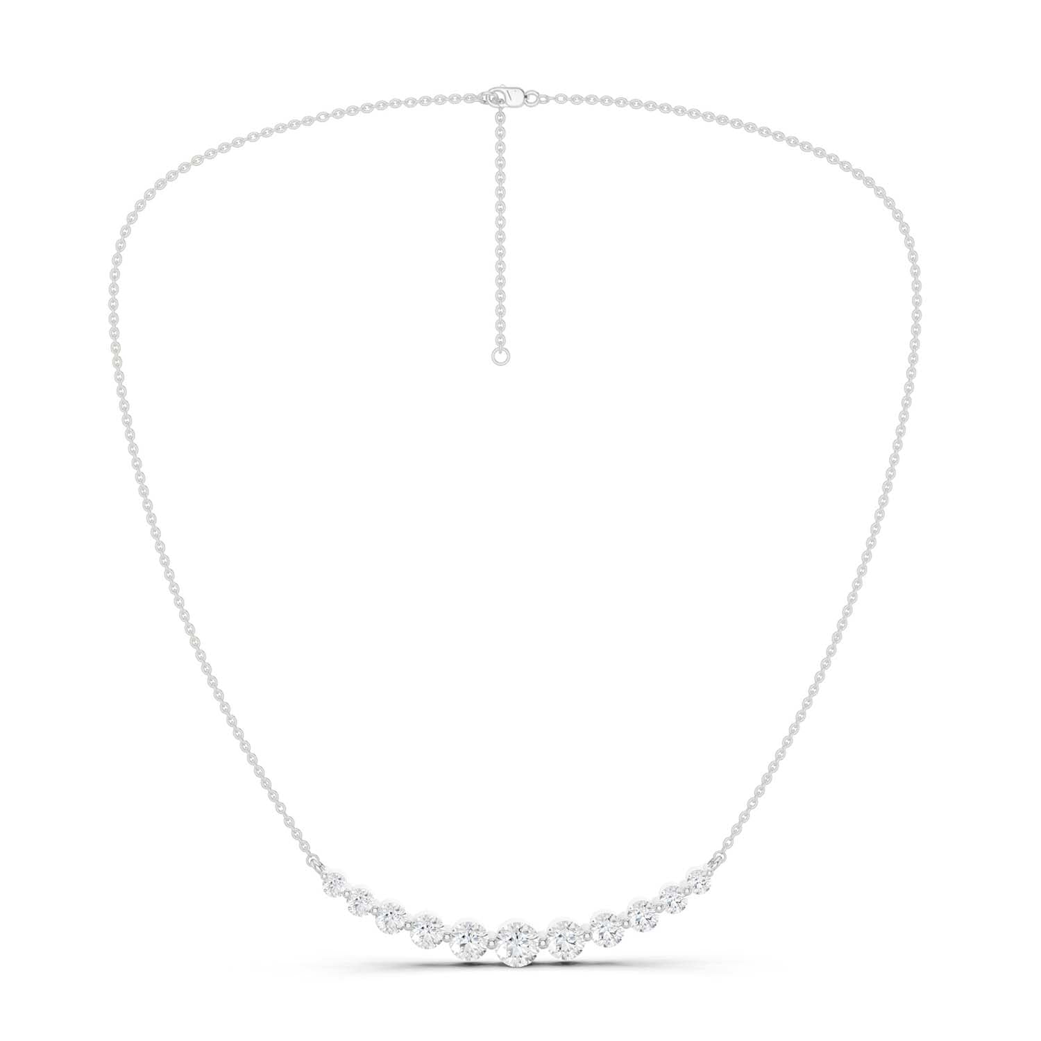 Our Captivating Necklace is an embodiment of timeless beauty. Crafted meticulously, this masterpiece showcases an enchanting row of eleven sustainable lab grown diamonds. Its widespread design transcends trends, serving as a daily jewelry staple and reminder of the brilliance within each of us.