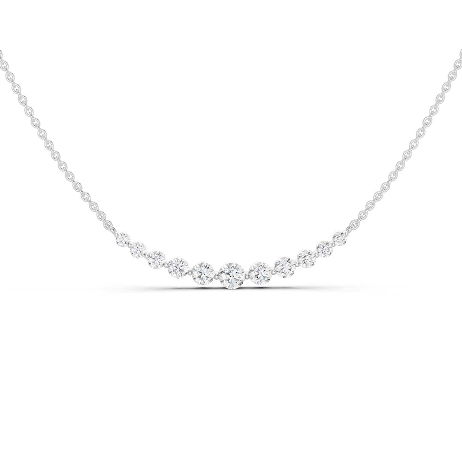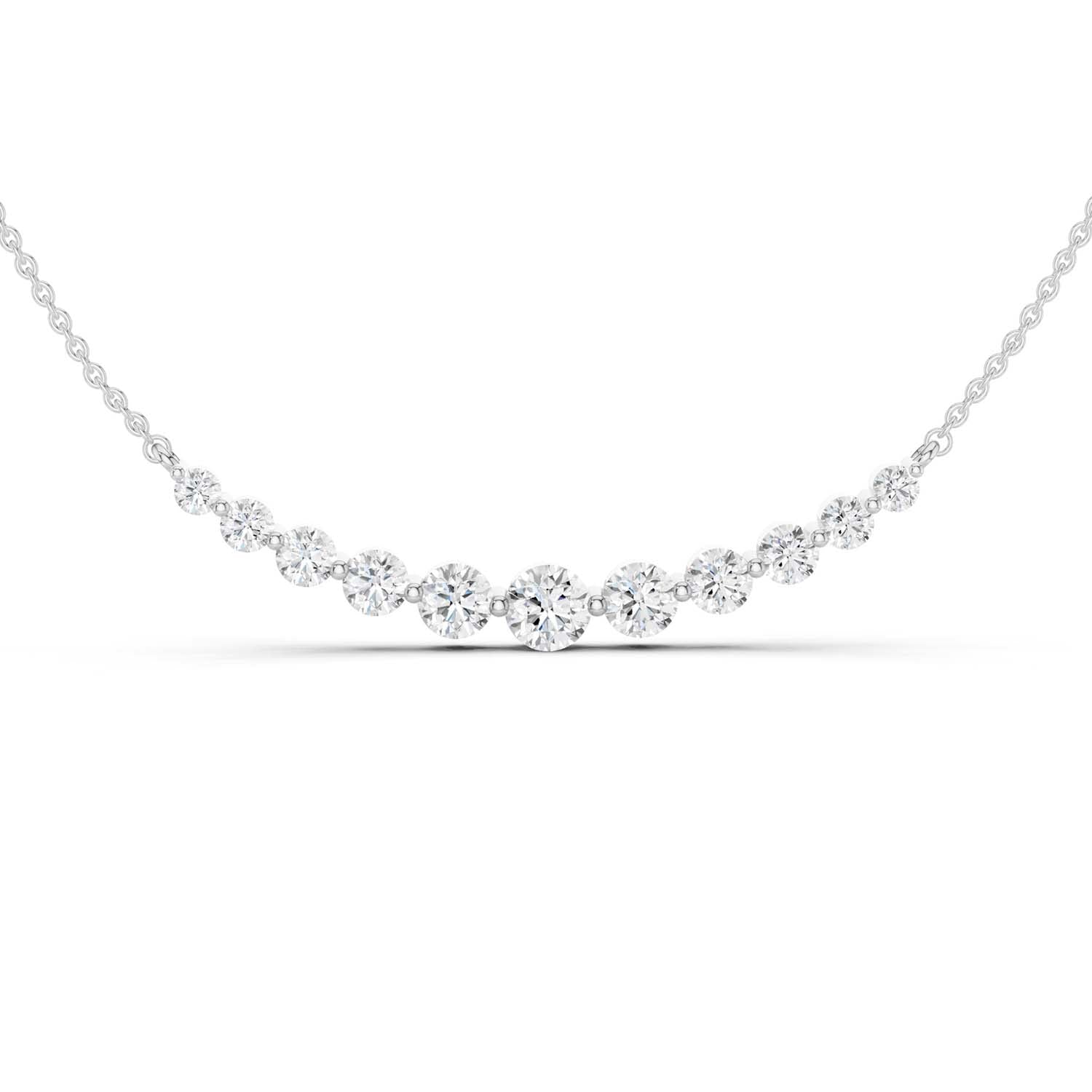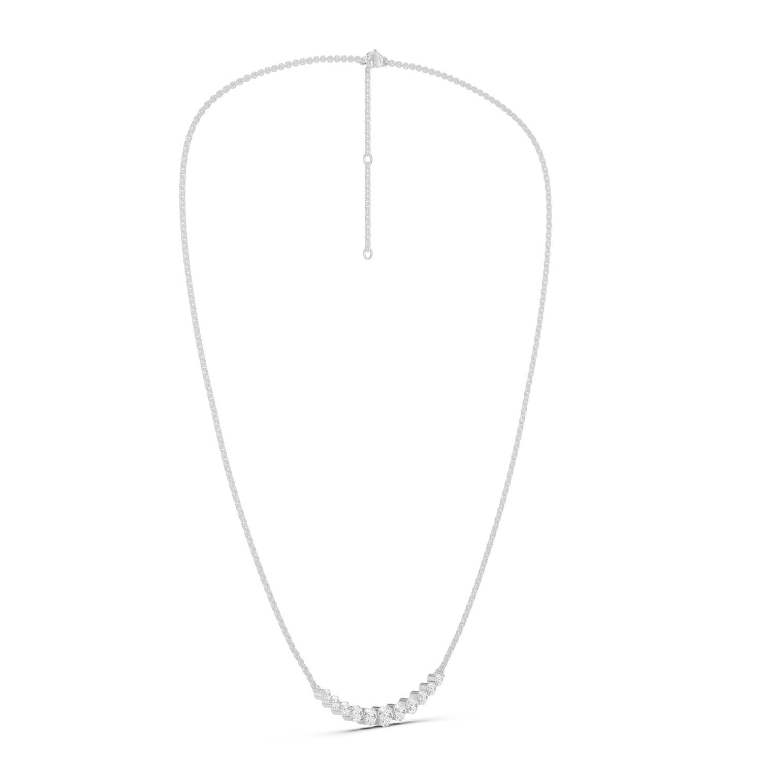 Our Captivating Necklace is an embodiment of timeless beauty. Crafted meticulously, this masterpiece showcases an enchanting row of eleven sustainable lab grown diamonds. Its widespread design transcends trends, serving as a daily jewelry staple and reminder of the brilliance within each of us.