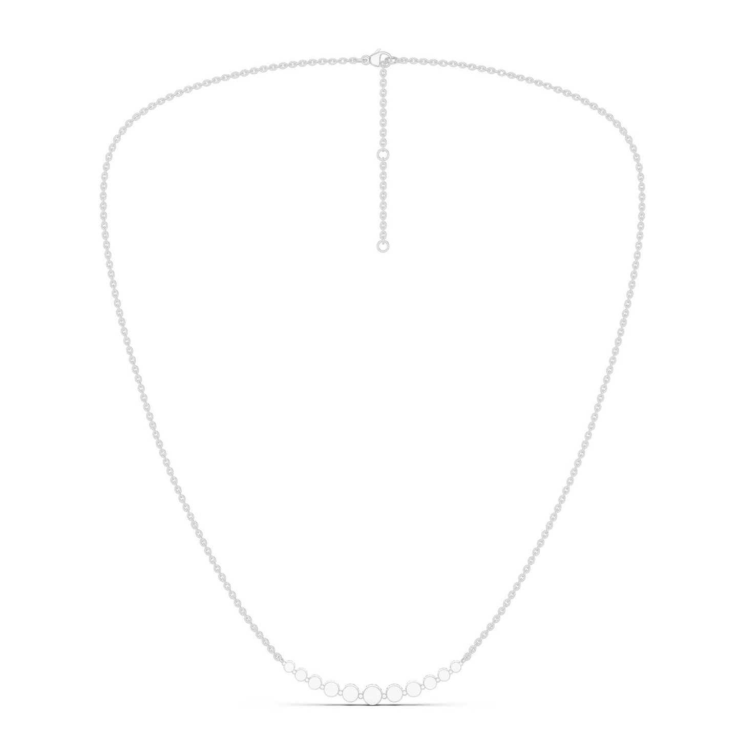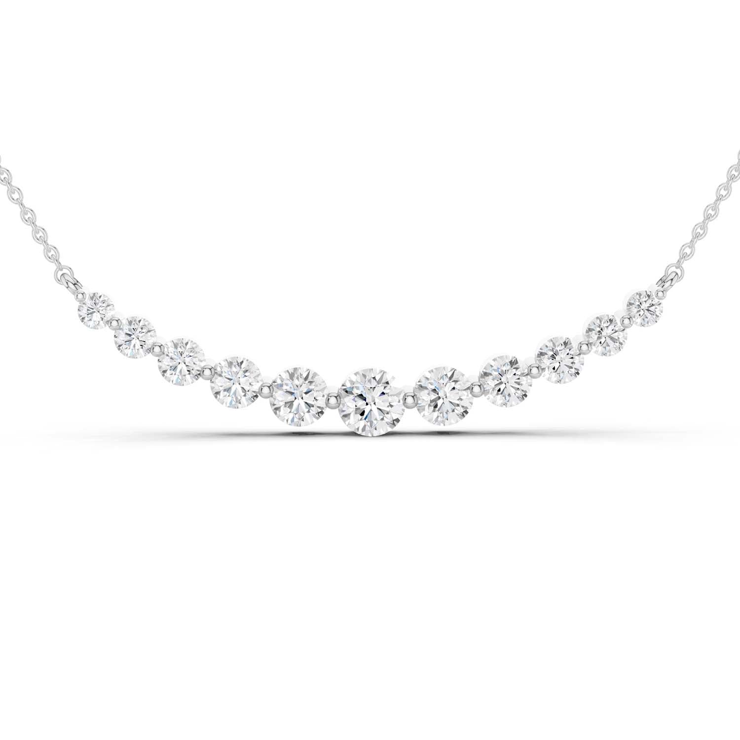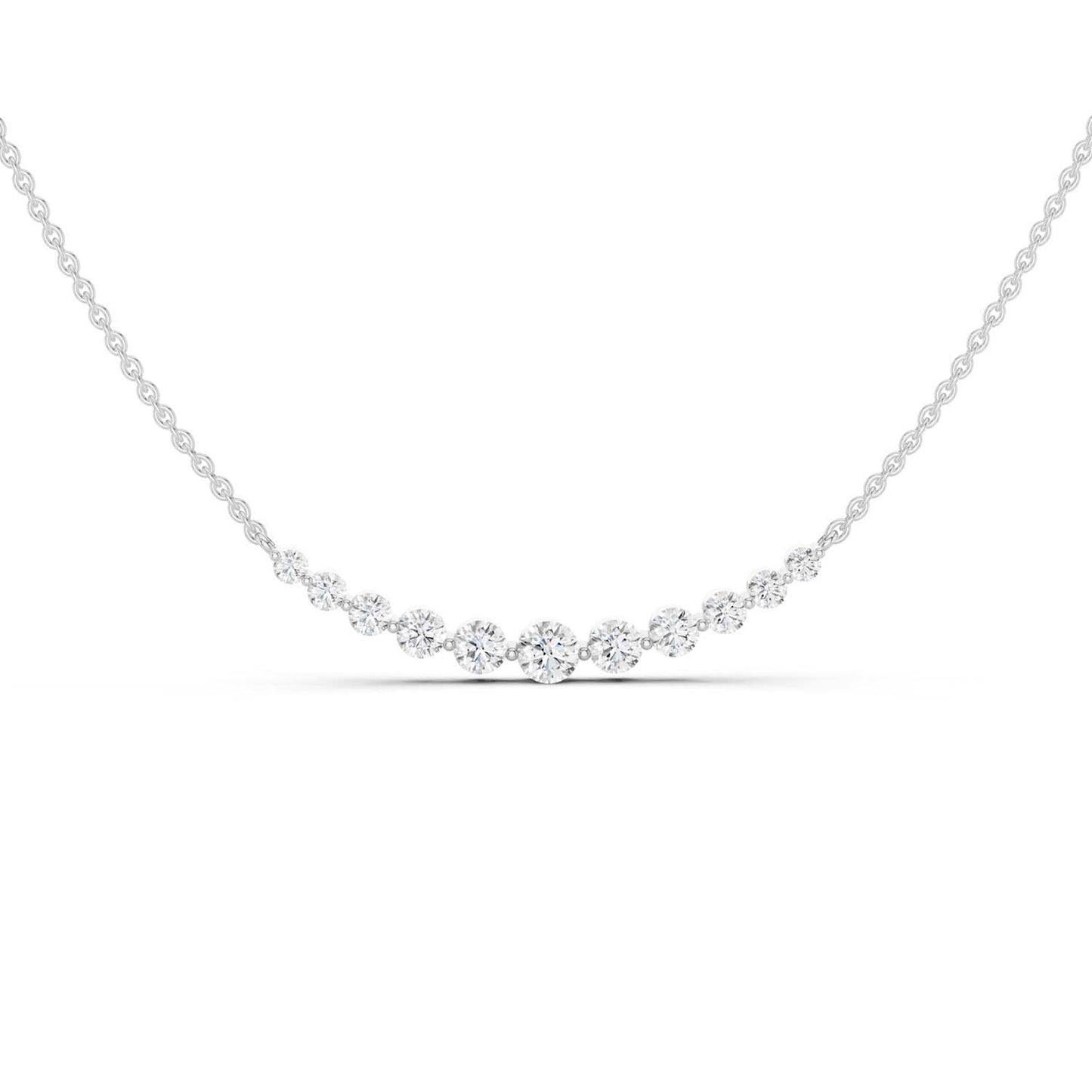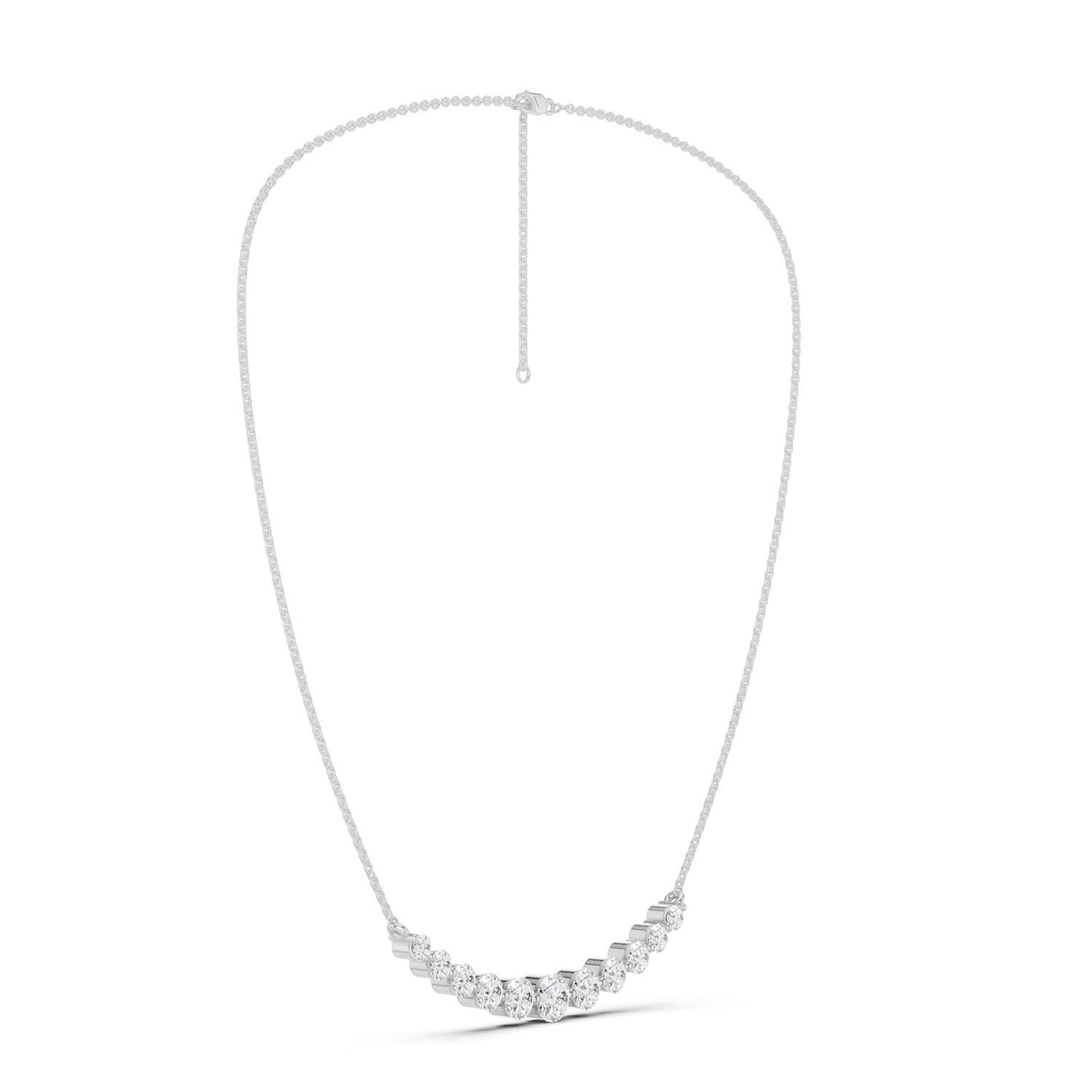 Our Captivating Necklace is an embodiment of timeless beauty. Crafted meticulously, this masterpiece showcases an enchanting row of eleven sustainable lab grown diamonds. Its widespread design transcends trends, serving as a daily jewelry staple and reminder of the brilliance within each of us.