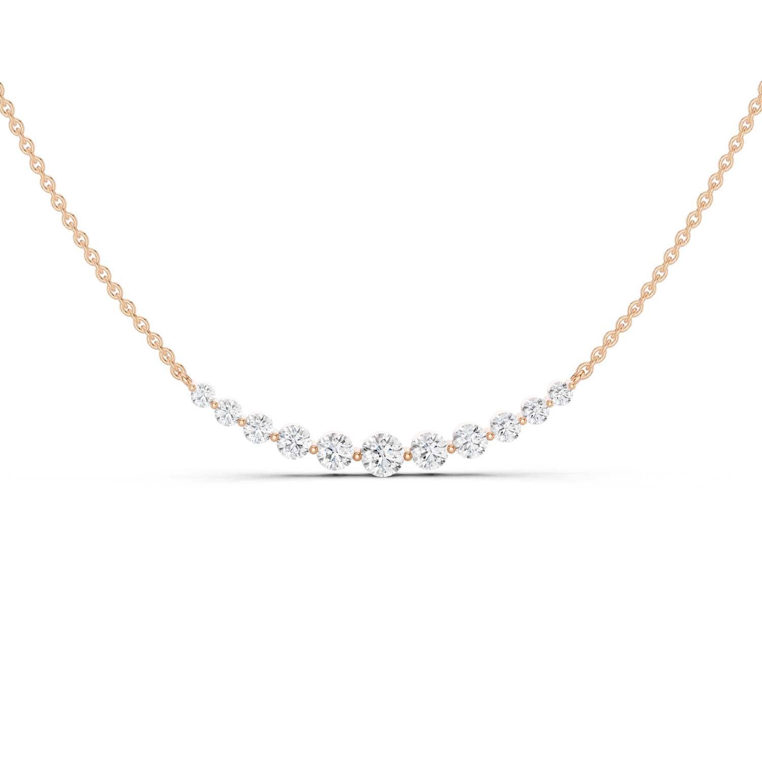 Our Captivating Necklace is an embodiment of timeless beauty. Crafted meticulously, this masterpiece showcases an enchanting row of eleven ethically sourced diamonds. Its widespread design transcends trends, serving as a daily jewelry staple and reminder of the brilliance within each of us.