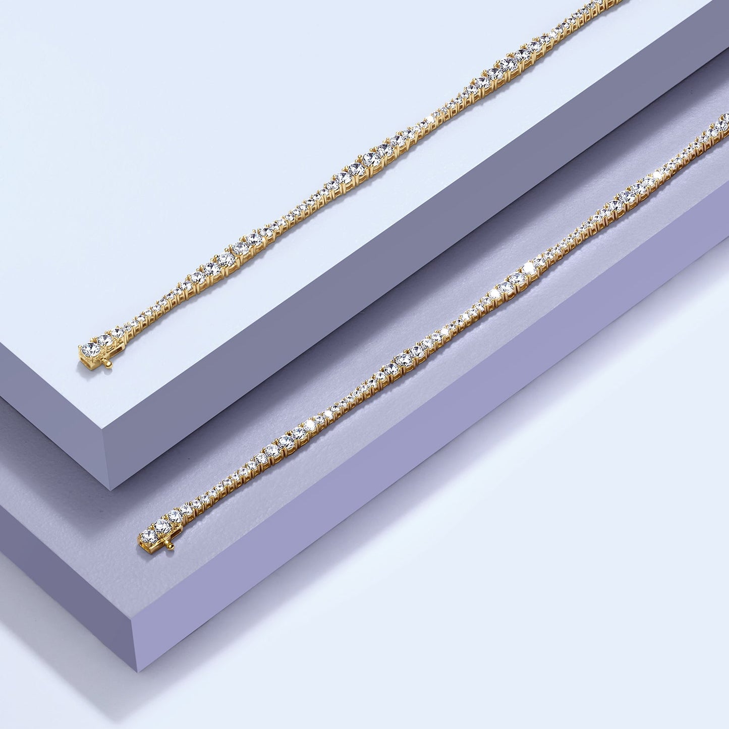 The Charming Tennis Bracelet features a delicate string of linked diamonds, each meticulously poised and set in a classic design that has captivated hearts for generations. Designed to be versatile, it effortlessly complements a wide range of styles and occasions. Adorn your wrist with the diamond tennis bracelet—a testament to the profound simplicity that makes life exquisite.