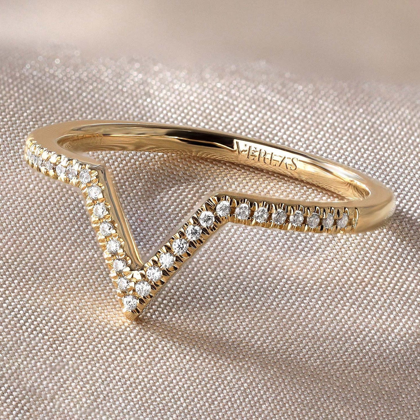 This Chevron V Ring features a striking chevron-inspired V shape, which is both eye-catching and sophisticated. This geometric design creates a sense of movement and fluidity, making it a perfect choice for those who appreciate modern aesthetics. Whether worn alone as a standalone or with stacked diamond rings for a trendy look, this ring will always command attention.