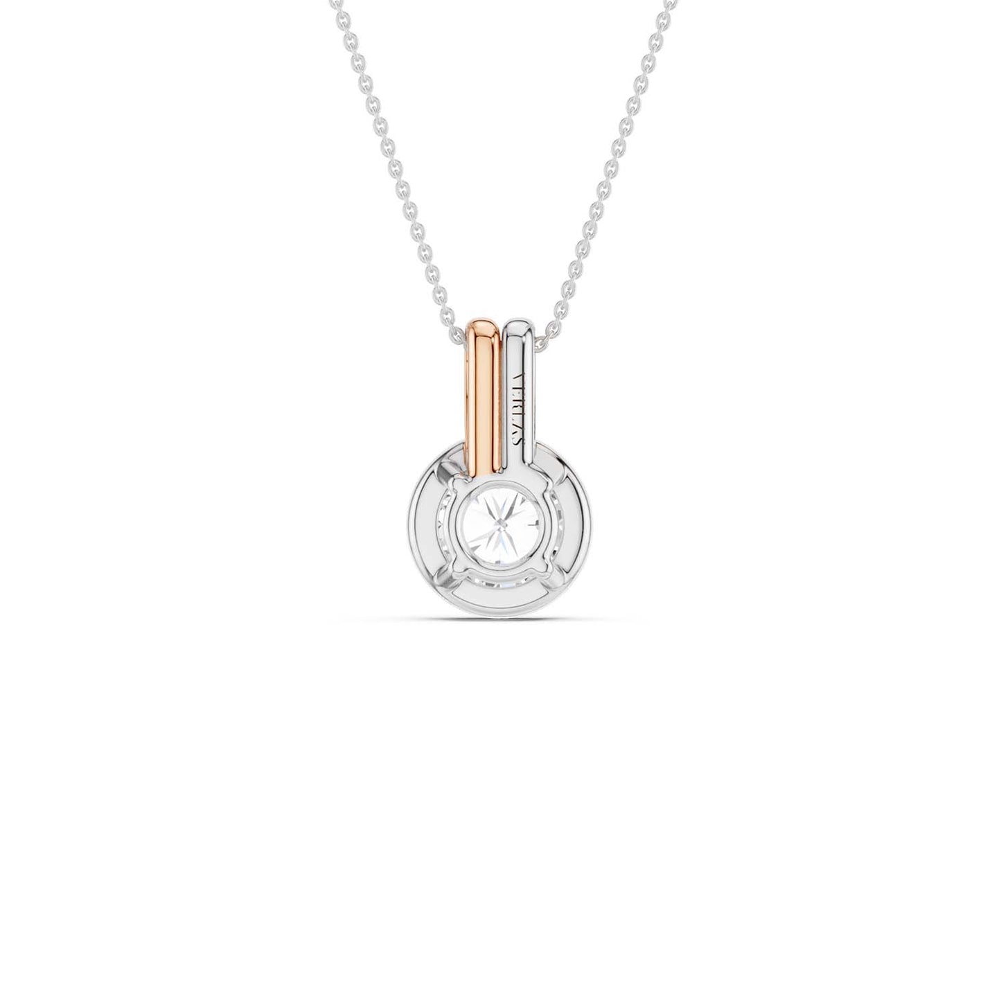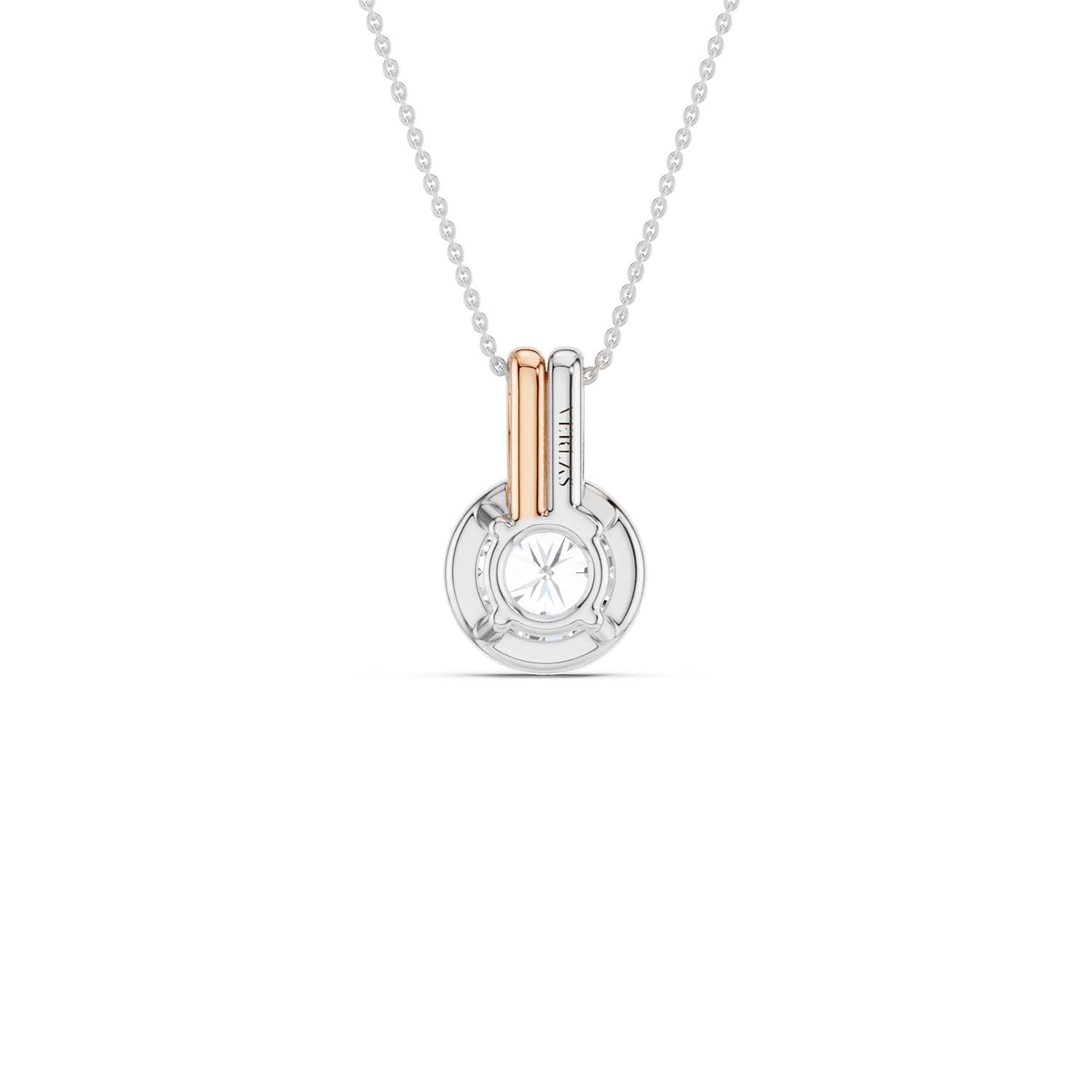 Discover timeless elegance with our Coupled Solitaire Bezel Necklace, a captivating blend of sterling white and radiant yellow gold. To enhance its brilliance and allure, it features a stunning round lab-grown diamond in a bezel setting. The unique double bail design adds a contemporary twist, allowing the diamond to float gracefully on the neckline, catching every glimmer of light. This diamond pendant necklace effortlessly blends classic charm with modern style, perfect for everyday wear and special occasions.