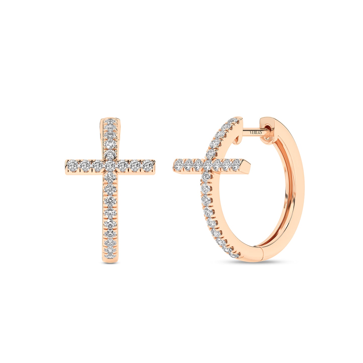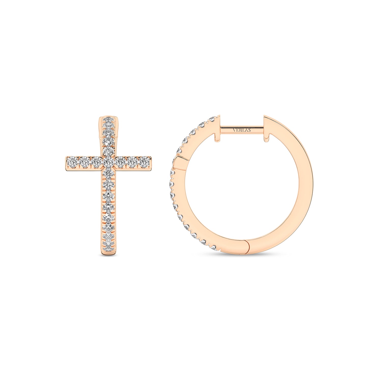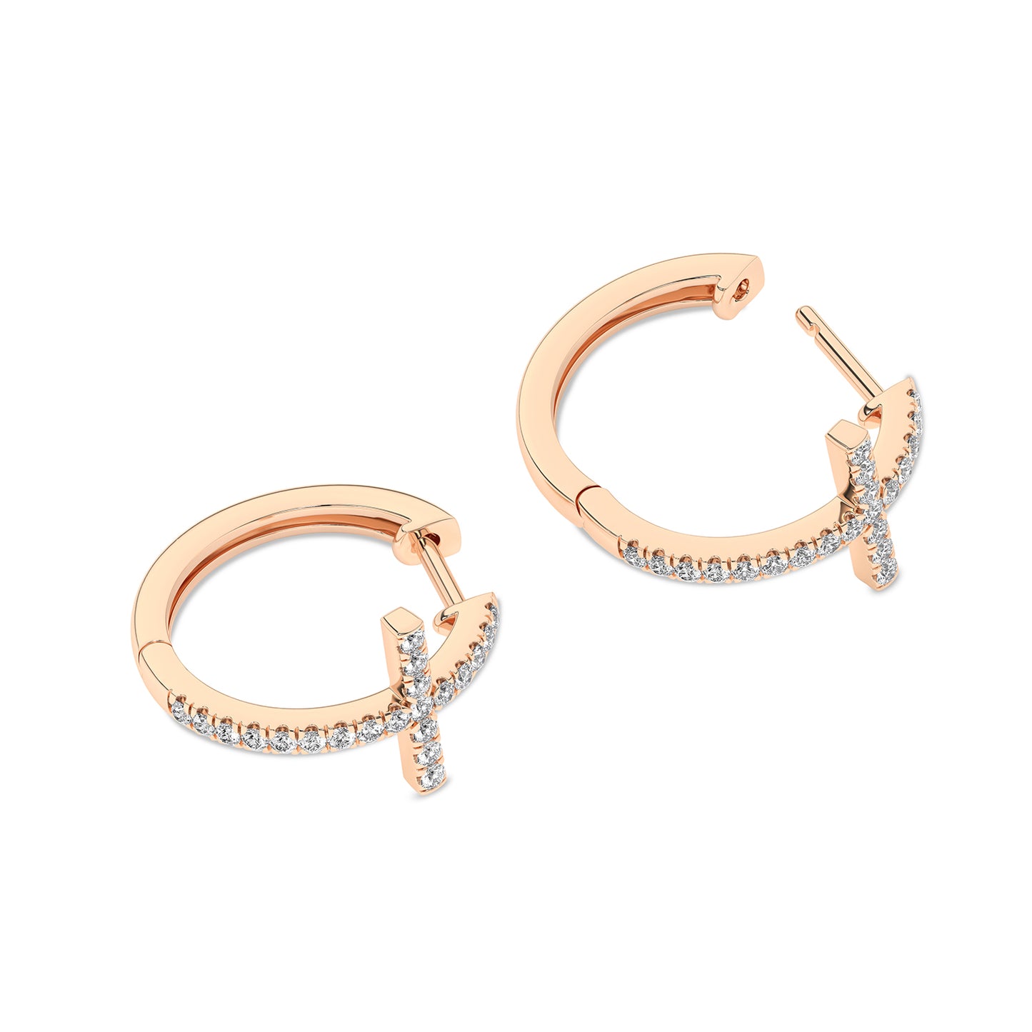 A blend of two iconic designs - Presenting the Cross Huggie Small Hoop earrings. This lab grown diamond huggie hoop combines the charm of a diamond hoop with the statement appeal of a cross hoop. The 14k solid gold band of this hoop is adorned by a trail of round radiant diamonds in the front of the earring. This statement hoop is as elegant as it is sustainable. Read Less