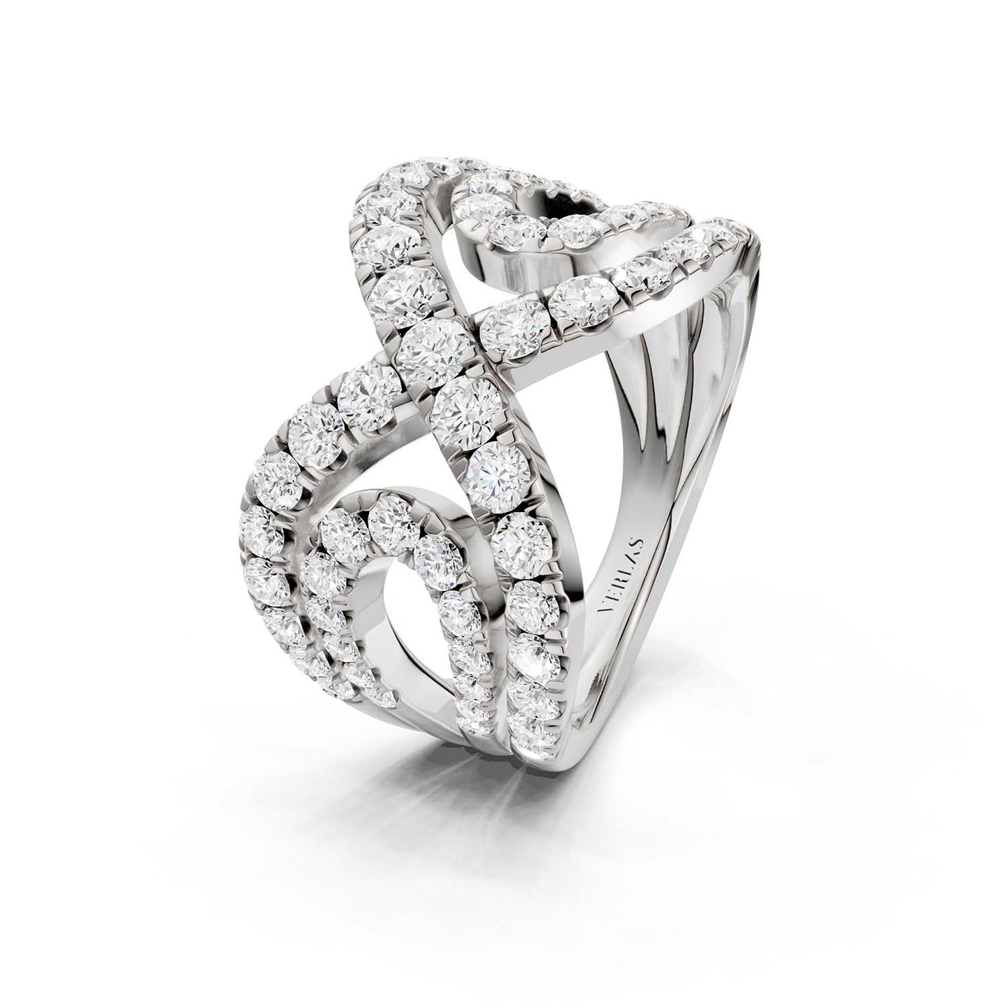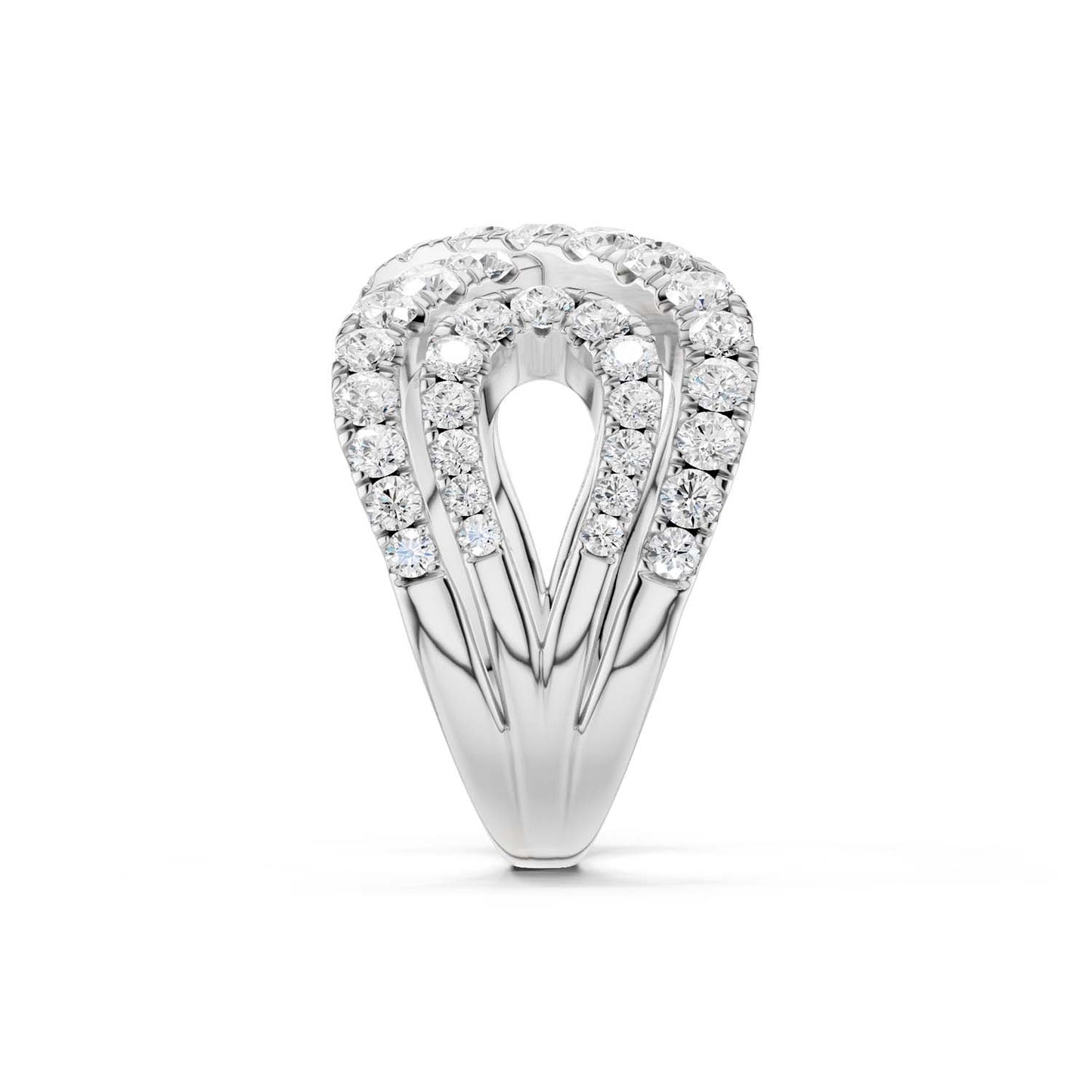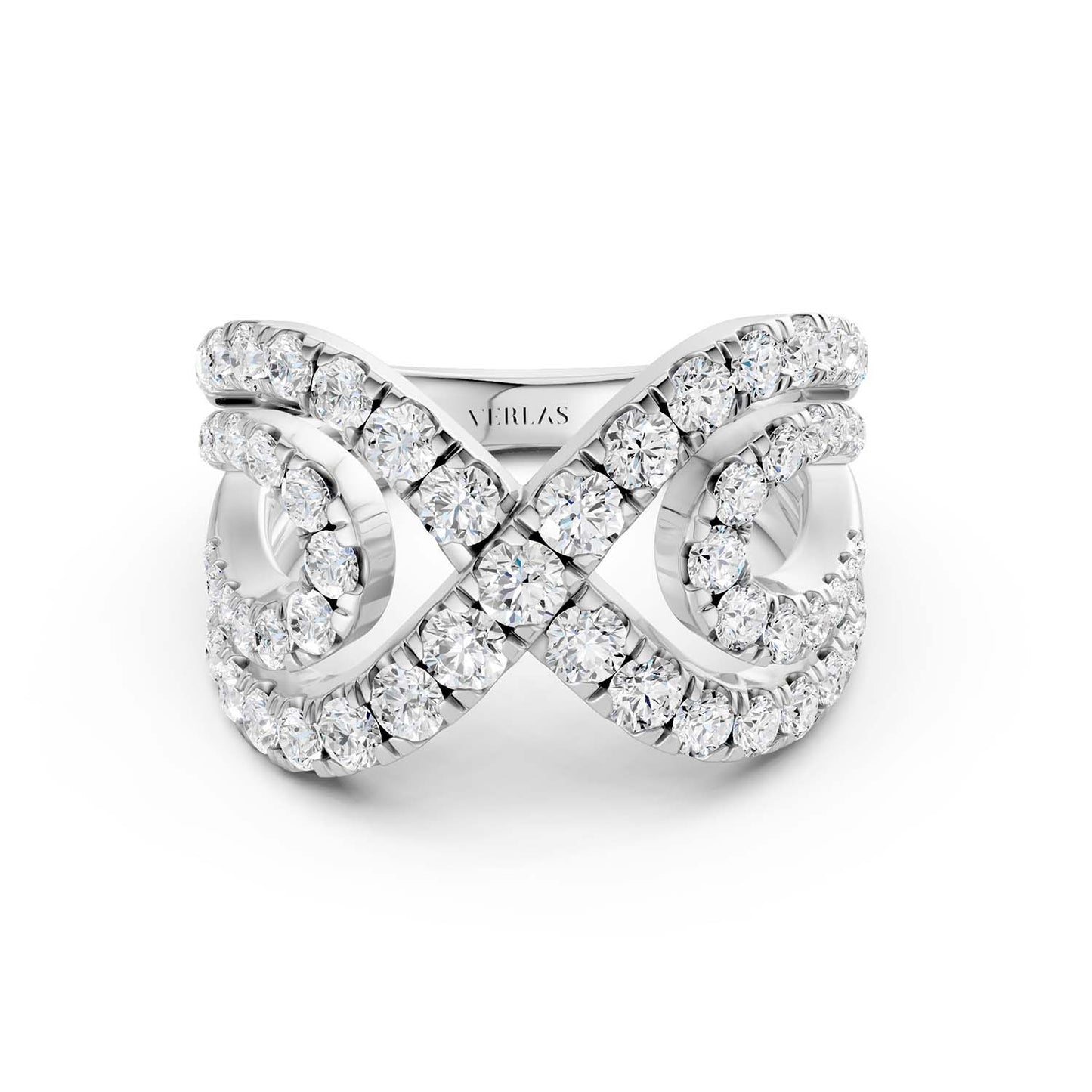 This Crossover Endearing Band features a captivating crossover design adorned with an array of shimmering diamonds, making it a stunning addition to your jewelry collection. Whether worn alone or create with a personalized diamond ring stack, it allows you to express your unique personality and flair.