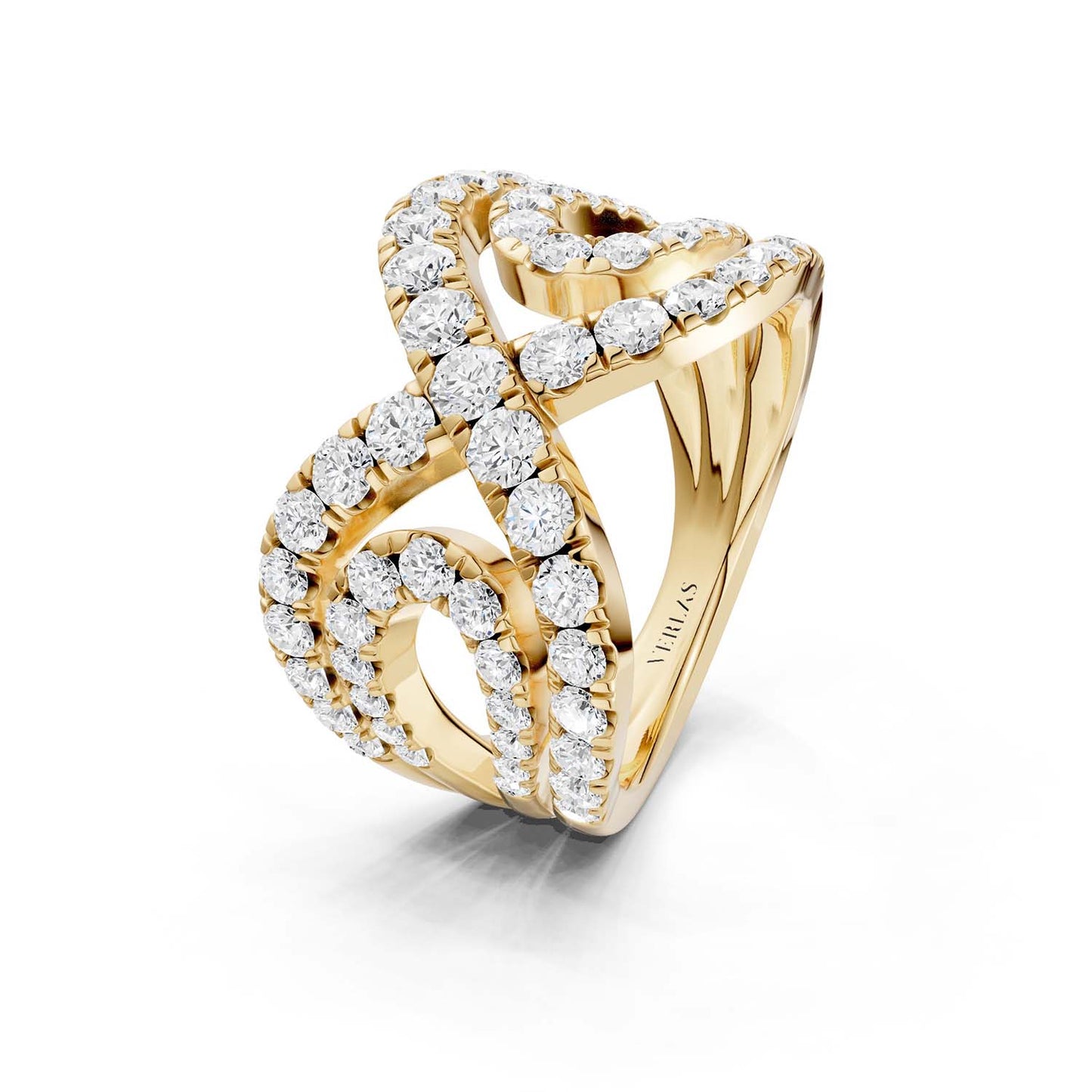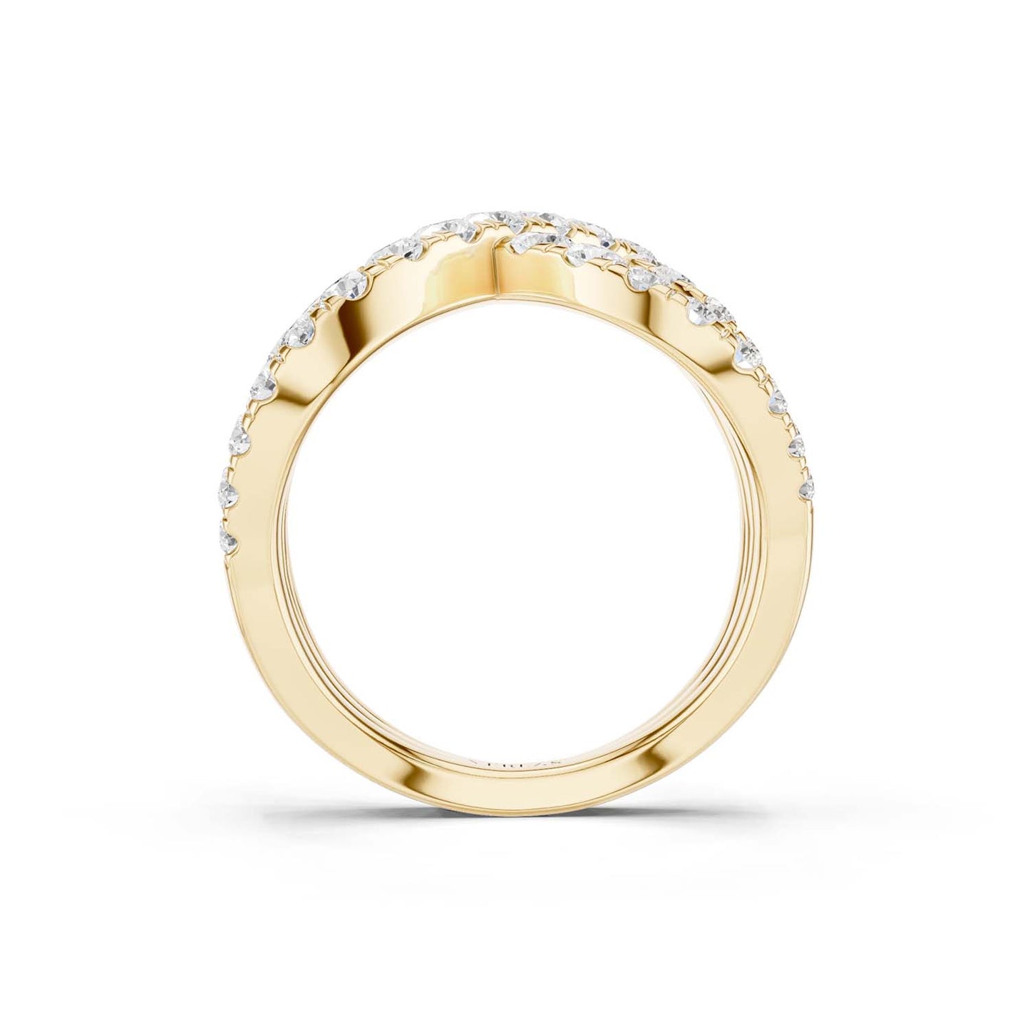 This Crossover Endearing Band features a captivating crossover design adorned with an array of shimmering diamonds, making it a stunning addition to your jewelry collection. Whether worn alone or create with a personalized diamond ring stack, it allows you to express your unique personality and flair.